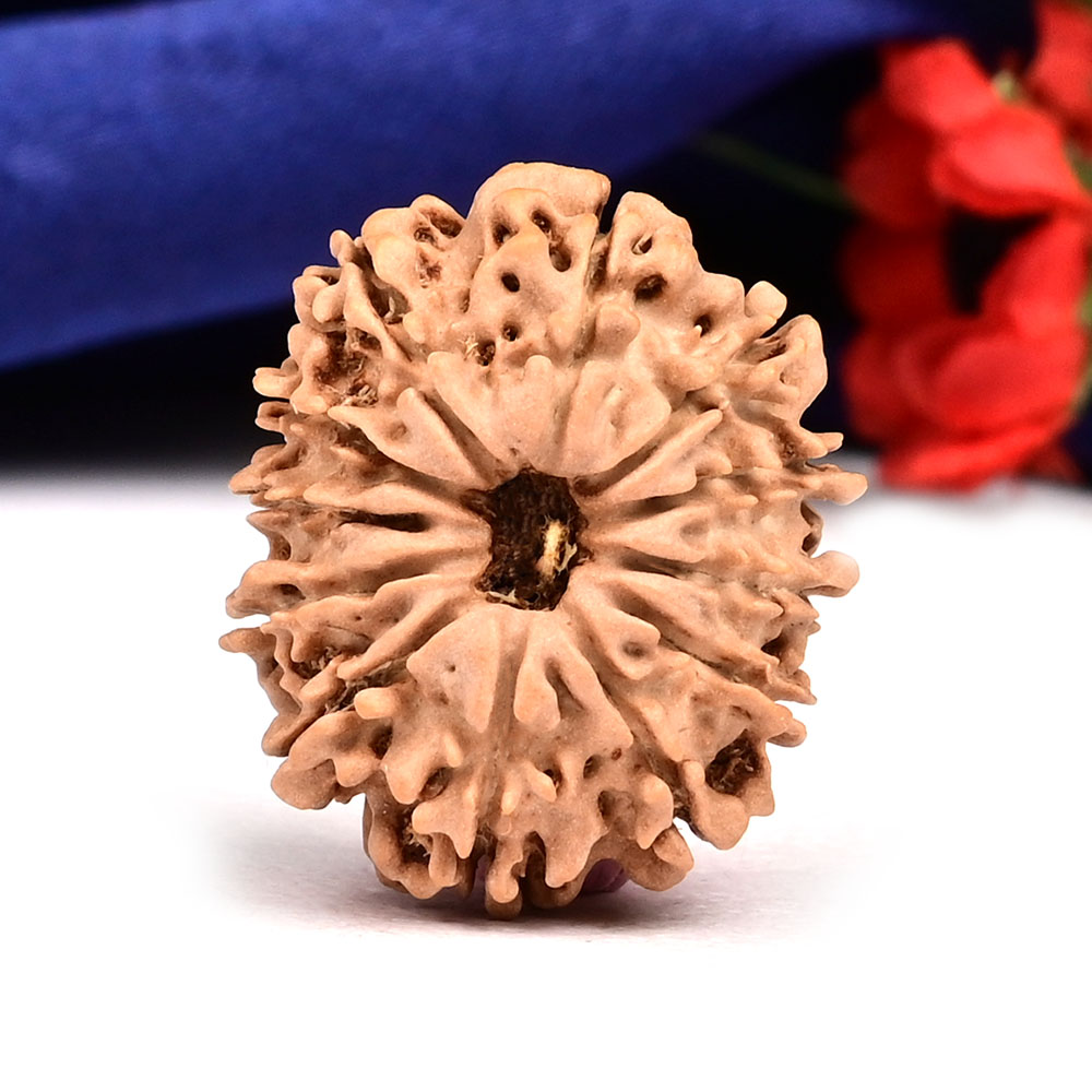 The 12 Mukhi Rudraksha embodies the energy of the Surya Deva and empowers the wearer with qualities of the Sun like authority, brilliance, and influence. It provides relief from stress and anger rooted in feelings of victimization, worries, suspicion, fear of the future, dependency, and low self-respect. The wearer gains personal power, drive, vigor, excellent health, and a commanding presence. This Rudraksha fosters leadership qualities, visionary abilities, and the motivation to take decisive action leading in achievements that bring name, fame, success, and recognition. Additionally, it supports overall health and aids in better digestion.