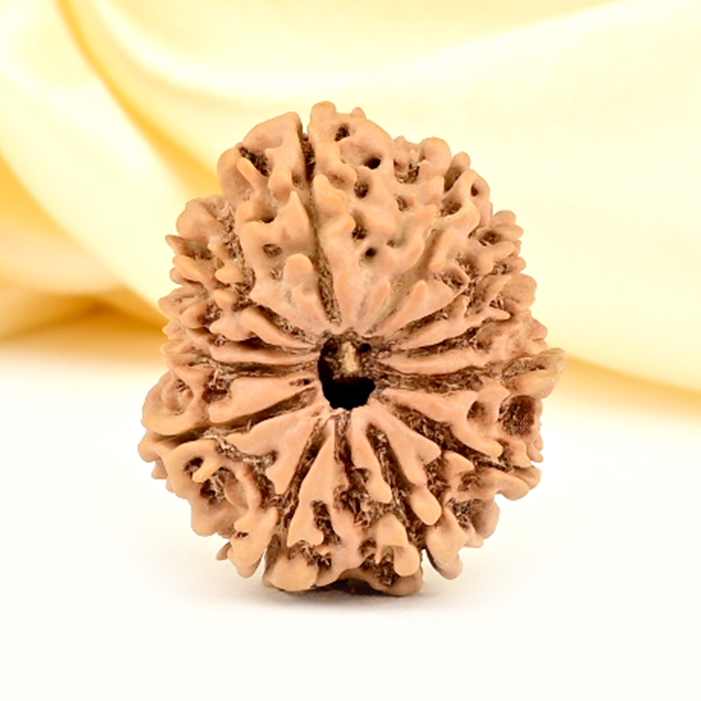 The 12 Mukhi Rudraksha embodies the energy of the Surya Deva and empowers the wearer with qualities of the Sun like authority, brilliance, and influence. It provides relief from stress and anger rooted in feelings of victimization, worries, suspicion, fear of the future, dependency, and low self-respect. The wearer gains personal power, drive, vigor, excellent health, and a commanding presence. This Rudraksha fosters leadership qualities, visionary abilities, and the motivation to take decisive action leading in achievements that bring name, fame, success, and recognition. Additionally, it supports overall health and aids in better digestion.