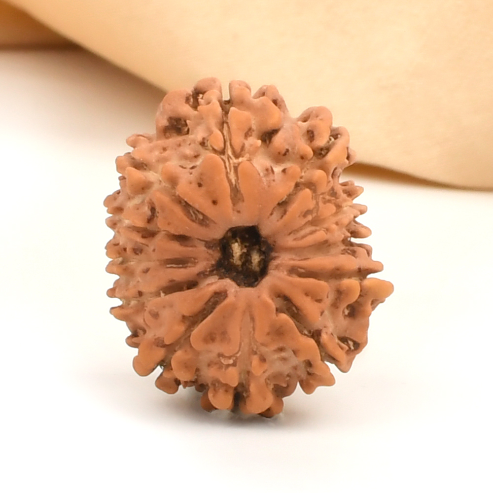 The 12 Mukhi Rudraksha embodies the energy of the Surya Deva and empowers the wearer with qualities of the Sun like authority, brilliance, and influence. It provides relief from stress and anger rooted in feelings of victimization, worries, suspicion, fear of the future, dependency, and low self-respect. The wearer gains personal power, drive, vigor, excellent health, and a commanding presence. This Rudraksha fosters leadership qualities, visionary abilities, and the motivation to take decisive action leading in achievements that bring name, fame, success, and recognition. Additionally, it supports overall health and aids in better digestion.