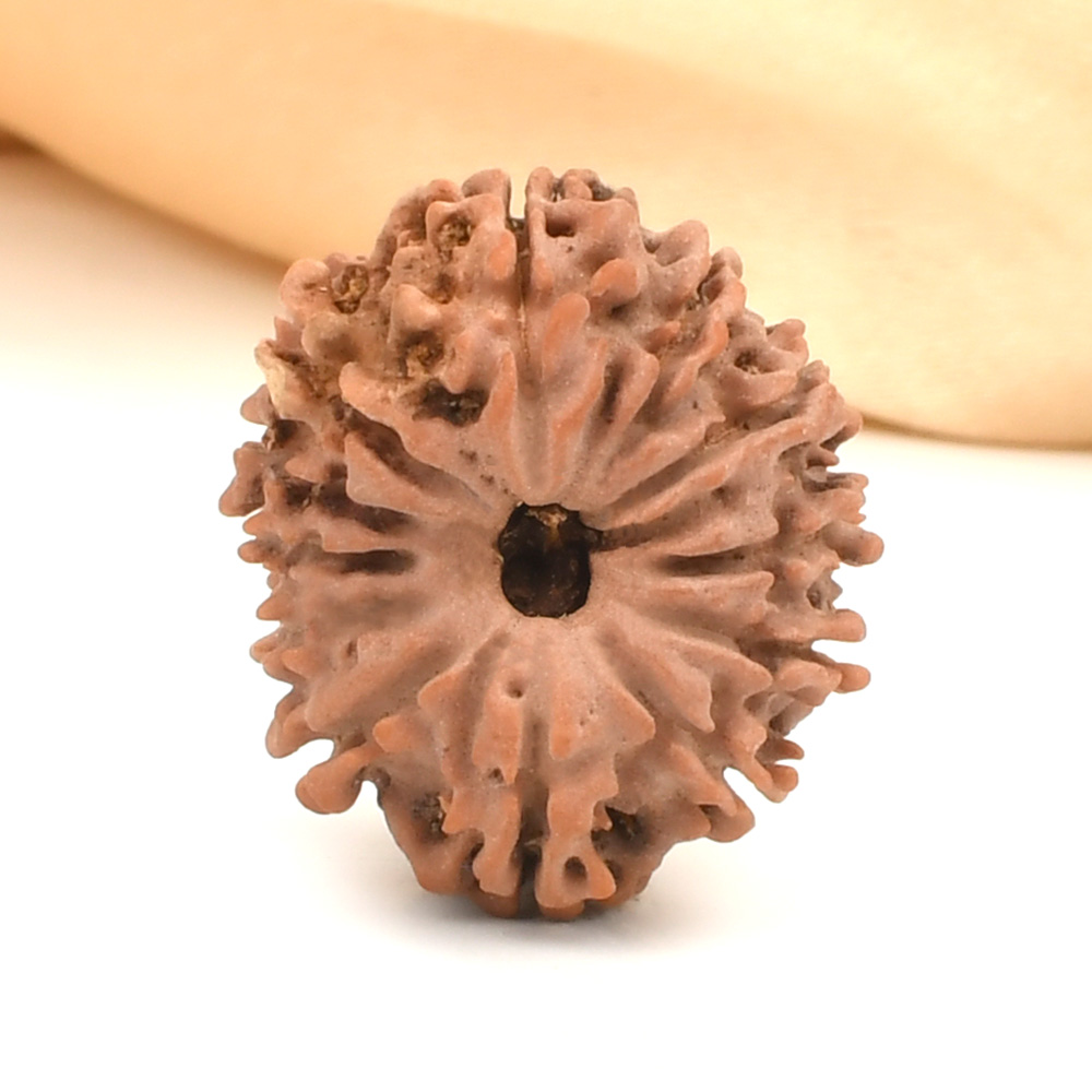 The 12 Mukhi Rudraksha embodies the energy of the Surya Deva and empowers the wearer with qualities of the Sun like authority, brilliance, and influence. It provides relief from stress and anger rooted in feelings of victimization, worries, suspicion, fear of the future, dependency, and low self-respect. The wearer gains personal power, drive, vigor, excellent health, and a commanding presence. This Rudraksha fosters leadership qualities, visionary abilities, and the motivation to take decisive action leading in achievements that bring name, fame, success, and recognition. Additionally, it supports overall health and aids in better digestion.