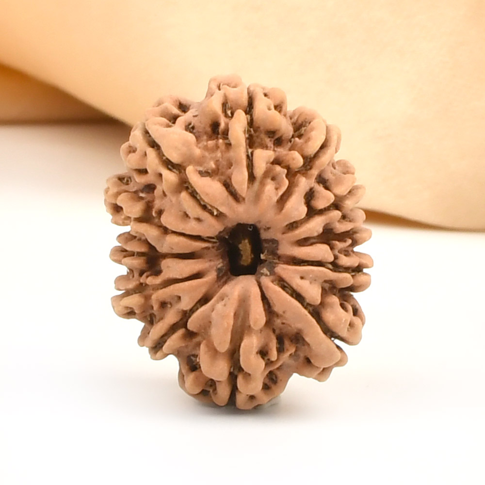 The 12 Mukhi Rudraksha embodies the energy of the Surya Deva and empowers the wearer with qualities of the Sun like authority, brilliance, and influence. It provides relief from stress and anger rooted in feelings of victimization, worries, suspicion, fear of the future, dependency, and low self-respect. The wearer gains personal power, drive, vigor, excellent health, and a commanding presence. This Rudraksha fosters leadership qualities, visionary abilities, and the motivation to take decisive action leading in achievements that bring name, fame, success, and recognition. Additionally, it supports overall health and aids in better digestion.