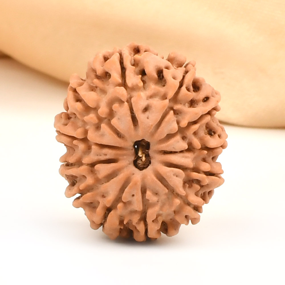 The 12 Mukhi Rudraksha embodies the energy of the Surya Deva and empowers the wearer with qualities of the Sun like authority, brilliance, and influence. It provides relief from stress and anger rooted in feelings of victimization, worries, suspicion, fear of the future, dependency, and low self-respect. The wearer gains personal power, drive, vigor, excellent health, and a commanding presence. This Rudraksha fosters leadership qualities, visionary abilities, and the motivation to take decisive action leading in achievements that bring name, fame, success, and recognition. Additionally, it supports overall health and aids in better digestion.