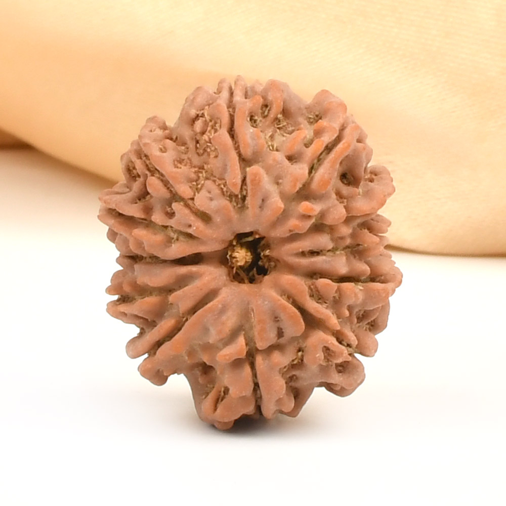 The 12 Mukhi Rudraksha embodies the energy of the Surya Deva and empowers the wearer with qualities of the Sun like authority, brilliance, and influence. It provides relief from stress and anger rooted in feelings of victimization, worries, suspicion, fear of the future, dependency, and low self-respect. The wearer gains personal power, drive, vigor, excellent health, and a commanding presence. This Rudraksha fosters leadership qualities, visionary abilities, and the motivation to take decisive action leading in achievements that bring name, fame, success, and recognition. Additionally, it supports overall health and aids in better digestion.