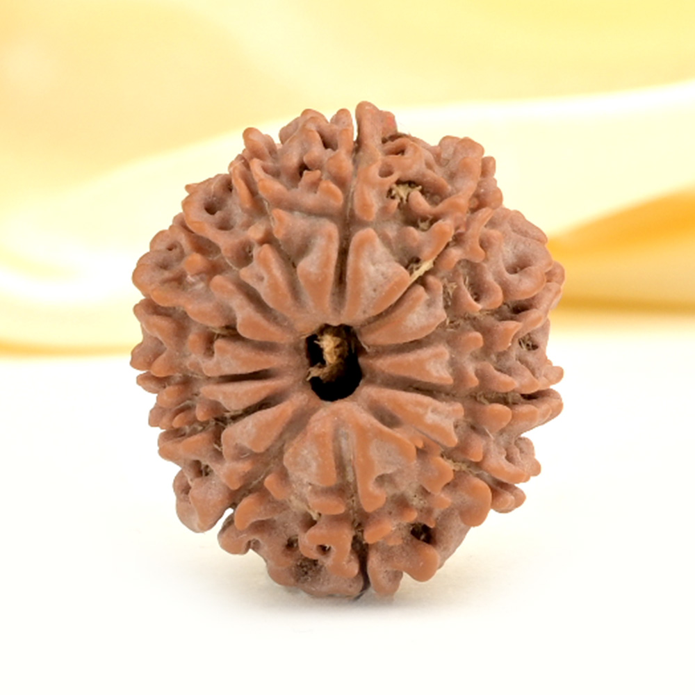 The 12 Mukhi Rudraksha embodies the energy of the Surya Deva and empowers the wearer with qualities of the Sun like authority, brilliance, and influence. It provides relief from stress and anger rooted in feelings of victimization, worries, suspicion, fear of the future, dependency, and low self-respect. The wearer gains personal power, drive, vigor, excellent health, and a commanding presence. This Rudraksha fosters leadership qualities, visionary abilities, and the motivation to take decisive action leading in achievements that bring name, fame, success, and recognition. Additionally, it supports overall health and aids in better digestion.
