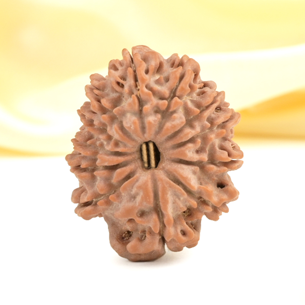 The 12 Mukhi Rudraksha embodies the energy of the Surya Deva and empowers the wearer with qualities of the Sun like authority, brilliance, and influence. It provides relief from stress and anger rooted in feelings of victimization, worries, suspicion, fear of the future, dependency, and low self-respect. The wearer gains personal power, drive, vigor, excellent health, and a commanding presence. This Rudraksha fosters leadership qualities, visionary abilities, and the motivation to take decisive action leading in achievements that bring name, fame, success, and recognition. Additionally, it supports overall health and aids in better digestion.
