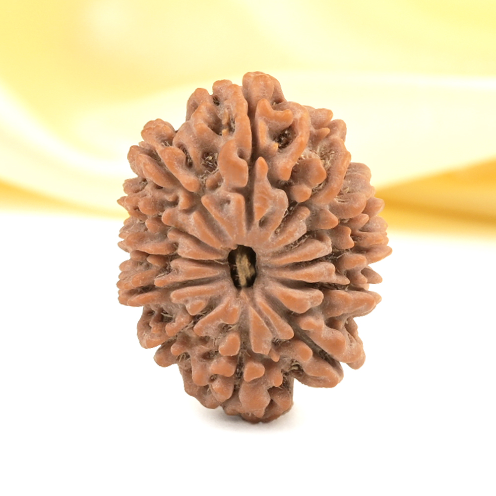 The 12 Mukhi Rudraksha embodies the energy of the Surya Deva and empowers the wearer with qualities of the Sun like authority, brilliance, and influence. It provides relief from stress and anger rooted in feelings of victimization, worries, suspicion, fear of the future, dependency, and low self-respect. The wearer gains personal power, drive, vigor, excellent health, and a commanding presence. This Rudraksha fosters leadership qualities, visionary abilities, and the motivation to take decisive action leading in achievements that bring name, fame, success, and recognition. Additionally, it supports overall health and aids in better digestion.