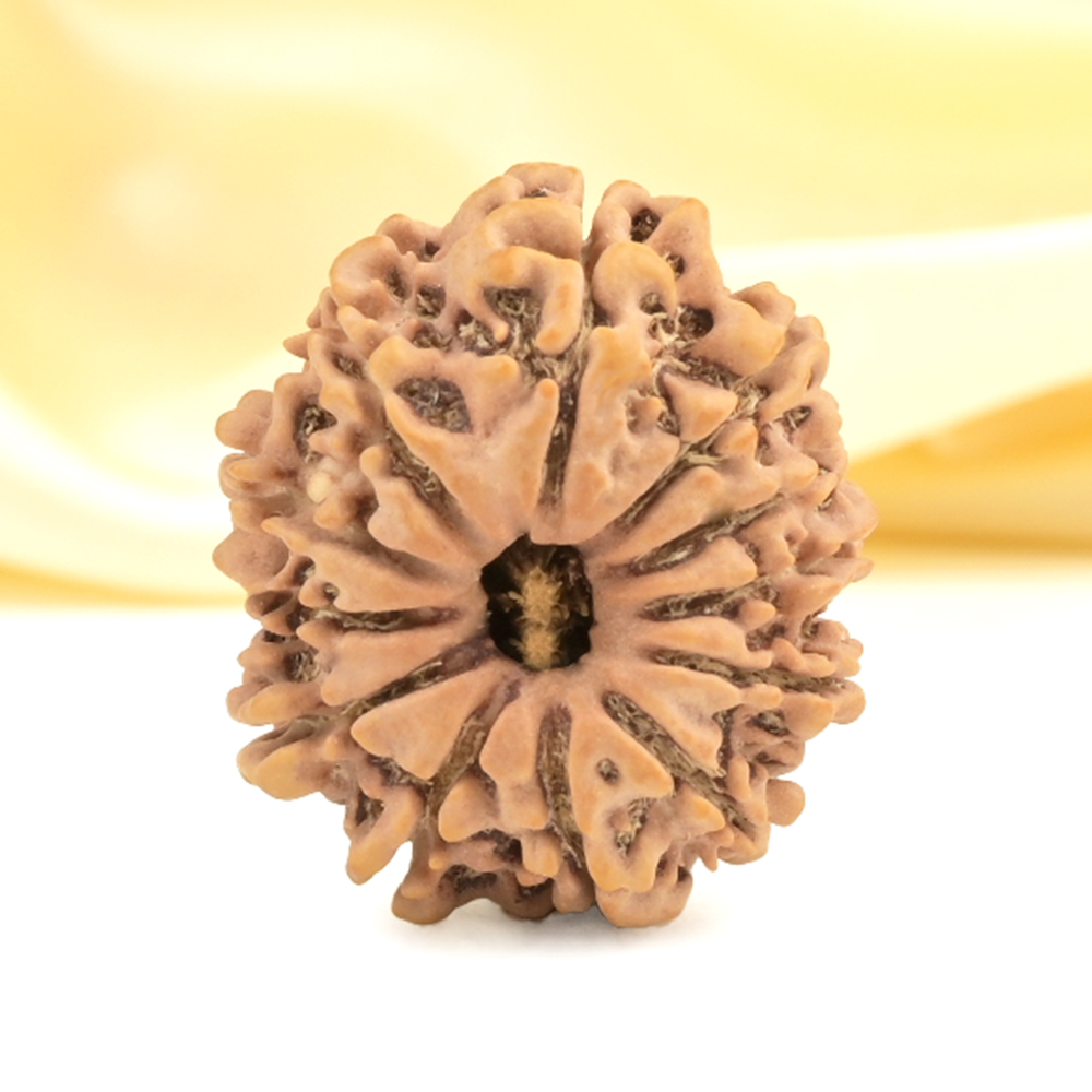 The 12 Mukhi Rudraksha embodies the energy of the Surya Deva and empowers the wearer with qualities of the Sun like authority, brilliance, and influence. It provides relief from stress and anger rooted in feelings of victimization, worries, suspicion, fear of the future, dependency, and low self-respect. The wearer gains personal power, drive, vigor, excellent health, and a commanding presence. This Rudraksha fosters leadership qualities, visionary abilities, and the motivation to take decisive action leading in achievements that bring name, fame, success, and recognition. Additionally, it supports overall health and aids in better digestion.