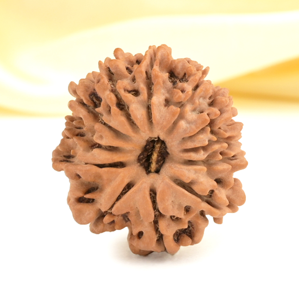 The 12 Mukhi Rudraksha embodies the energy of the Surya Deva and empowers the wearer with qualities of the Sun like authority, brilliance, and influence. It provides relief from stress and anger rooted in feelings of victimization, worries, suspicion, fear of the future, dependency, and low self-respect. The wearer gains personal power, drive, vigor, excellent health, and a commanding presence. This Rudraksha fosters leadership qualities, visionary abilities, and the motivation to take decisive action leading in achievements that bring name, fame, success, and recognition. Additionally, it supports overall health and aids in better digestion.