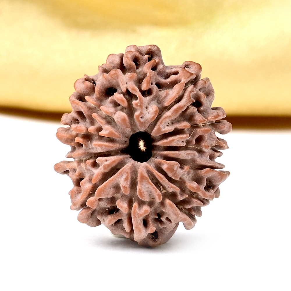The 12 Mukhi Rudraksha embodies the energy of the Surya Deva and empowers the wearer with qualities of the Sun like authority, brilliance, and influence. It provides relief from stress and anger rooted in feelings of victimization, worries, suspicion, fear of the future, dependency, and low self-respect. The wearer gains personal power, drive, vigor, excellent health, and a commanding presence. This Rudraksha fosters leadership qualities, visionary abilities, and the motivation to take decisive action leading in achievements that bring name, fame, success, and recognition. Additionally, it supports overall health and aids in better digestion.