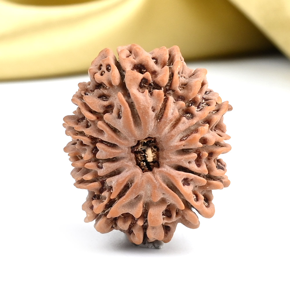 The 13 Mukhi Rudraksha embodies Kamadeva, the God of Love. It bestows a hypnotic attraction upon the wearer and aids in manifesting materialistic desires. Kamadeva, blessed by Lord Shiva, blurs the lines between illusions and reality, aligning a person with the right intent for their actions and thus aiding fulfillment. It enhances one’s sexuality and brings joy and zest to life, particularly for those who seek to make the most of the material world. Siddhas wear this Rudraksha to rise above Maya or illusions and thereby awaken Siddhis and raise Kundalini energy.