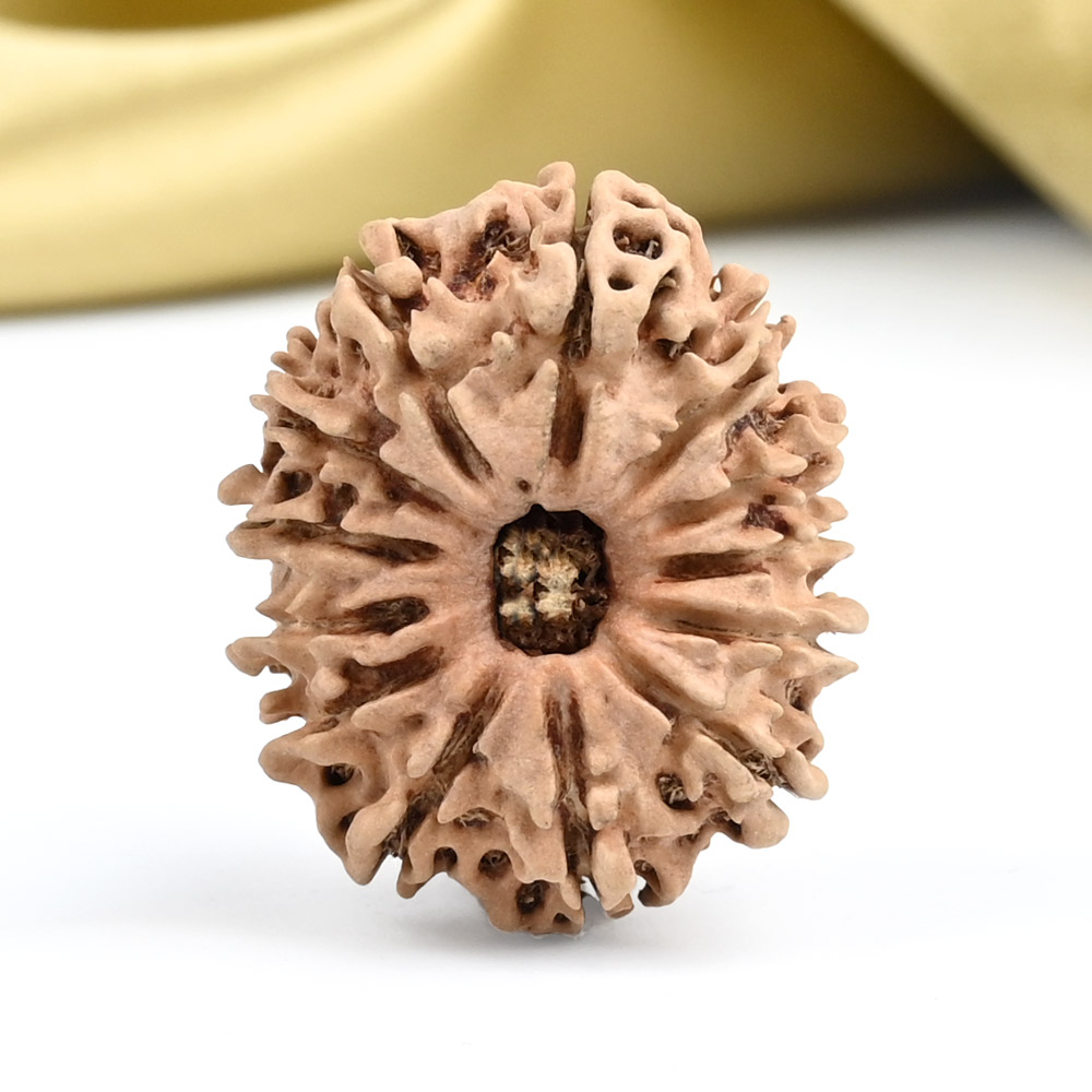 The 13 Mukhi Rudraksha embodies Kamadeva, the God of Love. It bestows a hypnotic attraction upon the wearer and aids in manifesting materialistic desires. Kamadeva, blessed by Lord Shiva, blurs the lines between illusions and reality, aligning a person with the right intent for their actions and thus aiding fulfillment. It enhances one’s sexuality and brings joy and zest to life, particularly for those who seek to make the most of the material world. Siddhas wear this Rudraksha to rise above Maya or illusions and thereby awaken Siddhis and raise Kundalini energy.