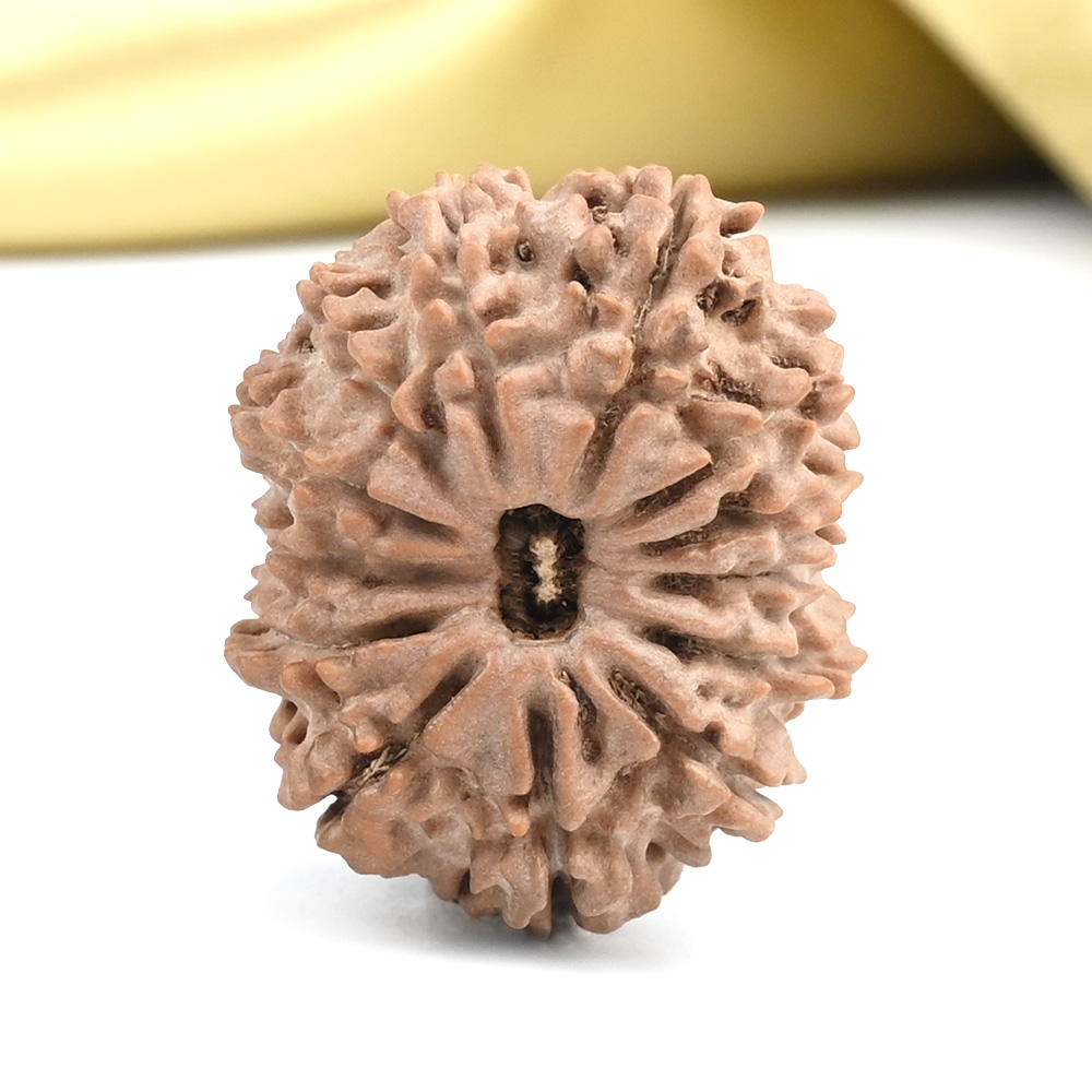The 13 Mukhi Rudraksha embodies Kamadeva, the God of Love. It bestows a hypnotic attraction upon the wearer and aids in manifesting materialistic desires. Kamadeva, blessed by Lord Shiva, blurs the lines between illusions and reality, aligning a person with the right intent for their actions and thus aiding fulfillment. It enhances one’s sexuality and brings joy and zest to life, particularly for those who seek to make the most of the material world. Siddhas wear this Rudraksha to rise above Maya or illusions and thereby awaken Siddhis and raise Kundalini energy.