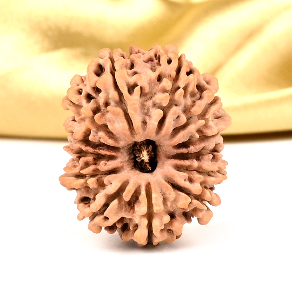 The 13 Mukhi Rudraksha embodies Kamadeva, the God of Love. It bestows a hypnotic attraction upon the wearer and aids in manifesting materialistic desires. Kamadeva, blessed by Lord Shiva, blurs the lines between illusions and reality, aligning a person with the right intent for their actions and thus aiding fulfillment. It enhances one’s sexuality and brings joy and zest to life, particularly for those who seek to make the most of the material world. Siddhas wear this Rudraksha to rise above Maya or illusions and thereby awaken Siddhis and raise Kundalini energy.