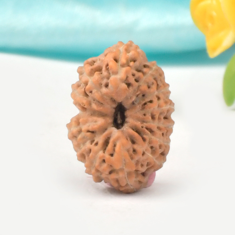 The 14 Mukhi Rudraksha is known as Deva Mani, the most precious divine gem. It embodies the mighty Hanuman and imparts the wearer with unwavering determination, divine insight, and the bravery to conquer any challenge. The wearer traverses the path of righteousness, achieving excellence, victory, and success. Hanuman, also known as Rudravtar, is a devoted disciple of Bhagwan Rama and imbues worshippers with His qualities of sincere devotion and unwavering loyalty towards dharma. Those attuned with this Rudraksha, and thus Lord Hanuman, are guided towards perfect mastery of the senses and virtues such as endurance, fearlessness, and courage. Wearing this Rudraksha helps alleviate uncontrolled anger and fear, bone pains, and blood-related disorders.