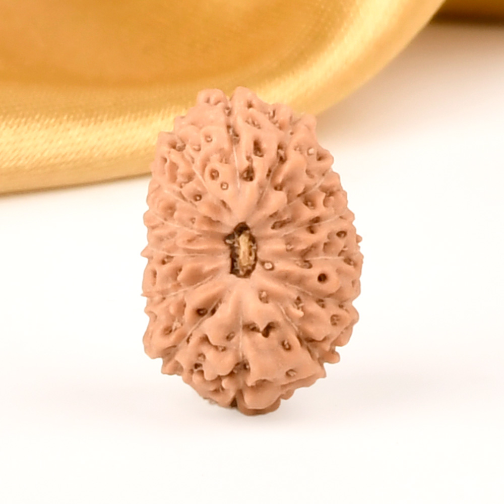 The 14 Mukhi Rudraksha is known as Deva Mani, the most precious divine gem. It embodies the mighty Hanuman and imparts the wearer with unwavering determination, divine insight, and the bravery to conquer any challenge. The wearer traverses the path of righteousness, achieving excellence, victory, and success. Hanuman, also known as Rudravtar, is a devoted disciple of Bhagwan Rama and imbues worshippers with His qualities of sincere devotion and unwavering loyalty towards dharma. Those attuned with this Rudraksha, and thus Lord Hanuman, are guided towards perfect mastery of the senses and virtues such as endurance, fearlessness, and courage. Wearing this Rudraksha helps alleviate uncontrolled anger and fear, bone pains, and blood-related disorders.