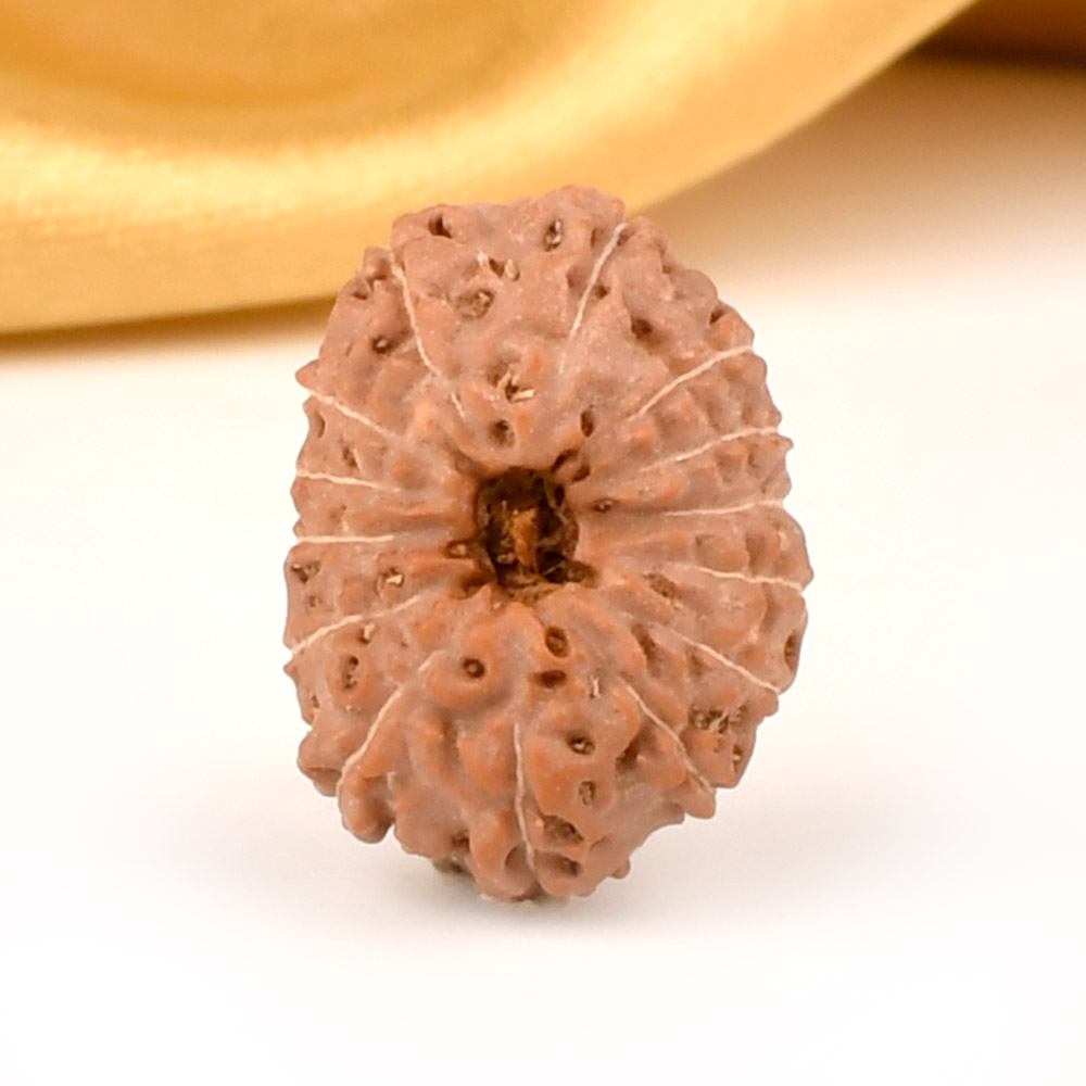 The 14 Mukhi Rudraksha is known as Deva Mani, the most precious divine gem. It embodies the mighty Hanuman and imparts the wearer with unwavering determination, divine insight, and the bravery to conquer any challenge. The wearer traverses the path of righteousness, achieving excellence, victory, and success. Hanuman, also known as Rudravtar, is a devoted disciple of Bhagwan Rama and imbues worshippers with His qualities of sincere devotion and unwavering loyalty towards dharma. Those attuned with this Rudraksha, and thus Lord Hanuman, are guided towards perfect mastery of the senses and virtues such as endurance, fearlessness, and courage. Wearing this Rudraksha helps alleviate uncontrolled anger and fear, bone pains, and blood-related disorders.