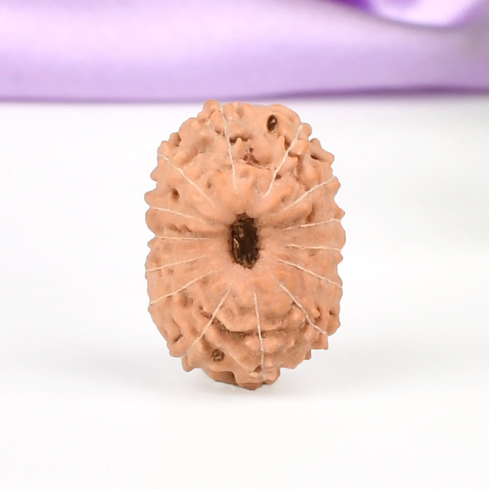 The 14 Mukhi Rudraksha is known as Deva Mani, the most precious divine gem. It embodies the mighty Hanuman and imparts the wearer with unwavering determination, divine insight, and the bravery to conquer any challenge. The wearer traverses the path of righteousness, achieving excellence, victory, and success. Hanuman, also known as Rudravtar, is a devoted disciple of Bhagwan Rama and imbues worshippers with His qualities of sincere devotion and unwavering loyalty towards dharma. Those attuned with this Rudraksha, and thus Lord Hanuman, are guided towards perfect mastery of the senses and virtues such as endurance, fearlessness, and courage. Wearing this Rudraksha helps alleviate uncontrolled anger and fear, bone pains, and blood-related disorders.