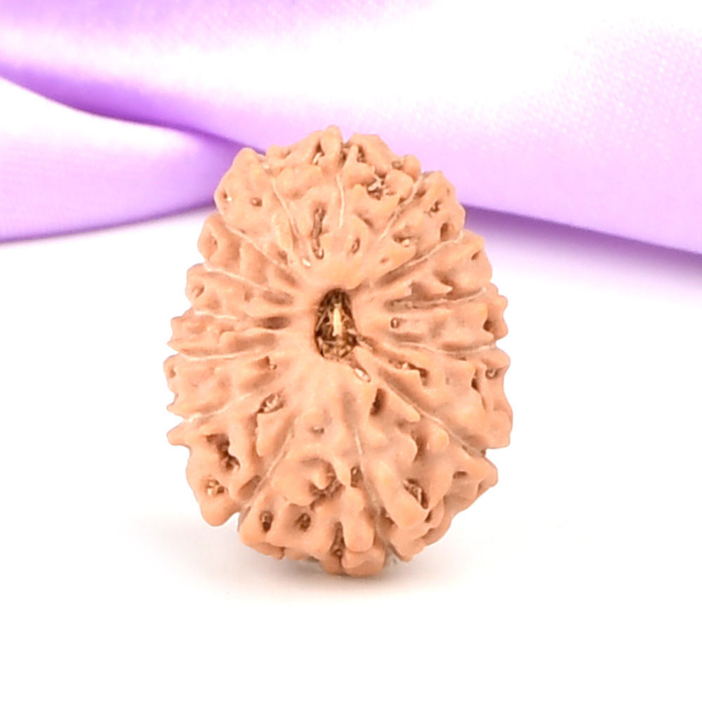 The 14 Mukhi Rudraksha is known as Deva Mani, the most precious divine gem. It embodies the mighty Hanuman and imparts the wearer with unwavering determination, divine insight, and the bravery to conquer any challenge. The wearer traverses the path of righteousness, achieving excellence, victory, and success. Hanuman, also known as Rudravtar, is a devoted disciple of Bhagwan Rama and imbues worshippers with His qualities of sincere devotion and unwavering loyalty towards dharma. Those attuned with this Rudraksha, and thus Lord Hanuman, are guided towards perfect mastery of the senses and virtues such as endurance, fearlessness, and courage. Wearing this Rudraksha helps alleviate uncontrolled anger and fear, bone pains, and blood-related disorders.