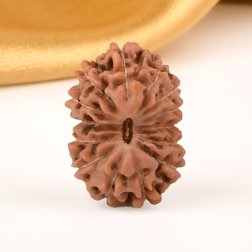 The 14 Mukhi Rudraksha is known as Deva Mani, the most precious divine gem. It embodies the mighty Hanuman and imparts the wearer with unwavering determination, divine insight, and the bravery to conquer any challenge. The wearer traverses the path of righteousness, achieving excellence, victory, and success. Hanuman, also known as Rudravtar, is a devoted disciple of Bhagwan Rama and imbues worshippers with His qualities of sincere devotion and unwavering loyalty towards dharma. Those attuned with this Rudraksha, and thus Lord Hanuman, are guided towards perfect mastery of the senses and virtues such as endurance, fearlessness, and courage. Wearing this Rudraksha helps alleviate uncontrolled anger and fear, bone pains, and blood-related disorders.