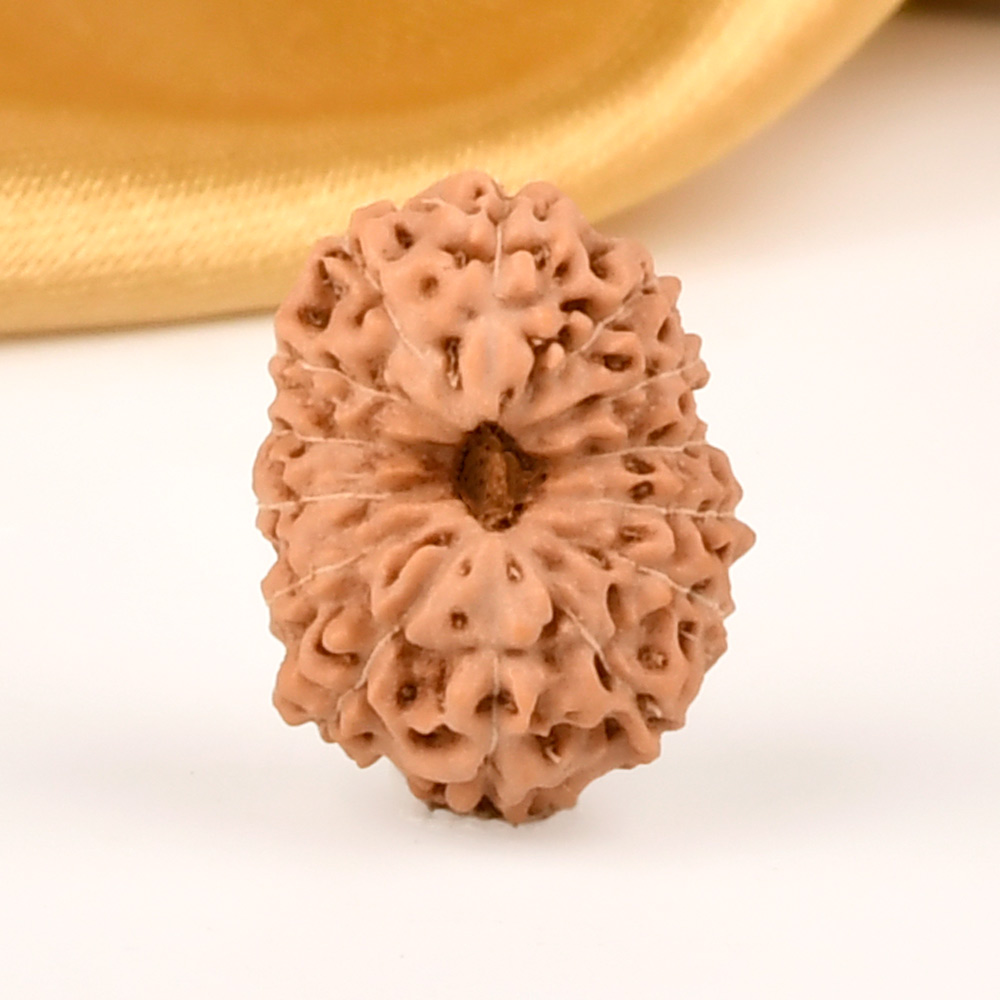 The 14 Mukhi Rudraksha is known as Deva Mani, the most precious divine gem. It embodies the mighty Hanuman and imparts the wearer with unwavering determination, divine insight, and the bravery to conquer any challenge. The wearer traverses the path of righteousness, achieving excellence, victory, and success. Hanuman, also known as Rudravtar, is a devoted disciple of Bhagwan Rama and imbues worshippers with His qualities of sincere devotion and unwavering loyalty towards dharma. Those attuned with this Rudraksha, and thus Lord Hanuman, are guided towards perfect mastery of the senses and virtues such as endurance, fearlessness, and courage. Wearing this Rudraksha helps alleviate uncontrolled anger and fear, bone pains, and blood-related disorders.