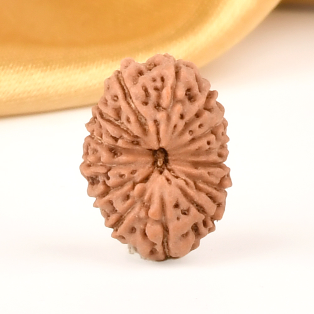 The 14 Mukhi Rudraksha is known as Deva Mani, the most precious divine gem. It embodies the mighty Hanuman and imparts the wearer with unwavering determination, divine insight, and the bravery to conquer any challenge. The wearer traverses the path of righteousness, achieving excellence, victory, and success. Hanuman, also known as Rudravtar, is a devoted disciple of Bhagwan Rama and imbues worshippers with His qualities of sincere devotion and unwavering loyalty towards dharma. Those attuned with this Rudraksha, and thus Lord Hanuman, are guided towards perfect mastery of the senses and virtues such as endurance, fearlessness, and courage. Wearing this Rudraksha helps alleviate uncontrolled anger and fear, bone pains, and blood-related disorders.