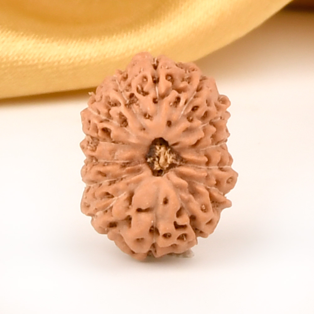 The 14 Mukhi Rudraksha is known as Deva Mani, the most precious divine gem. It embodies the mighty Hanuman and imparts the wearer with unwavering determination, divine insight, and the bravery to conquer any challenge. The wearer traverses the path of righteousness, achieving excellence, victory, and success. Hanuman, also known as Rudravtar, is a devoted disciple of Bhagwan Rama and imbues worshippers with His qualities of sincere devotion and unwavering loyalty towards dharma. Those attuned with this Rudraksha, and thus Lord Hanuman, are guided towards perfect mastery of the senses and virtues such as endurance, fearlessness, and courage. Wearing this Rudraksha helps alleviate uncontrolled anger and fear, bone pains, and blood-related disorders.