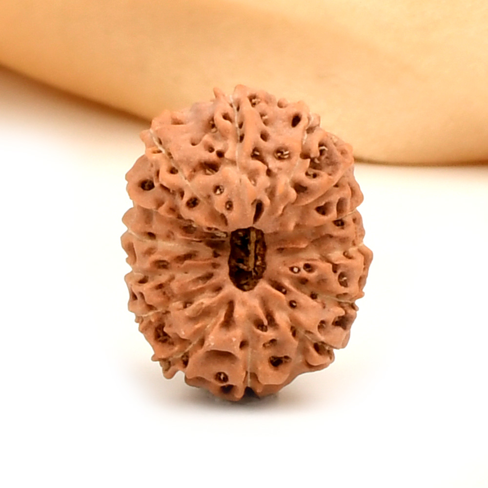 The 14 Mukhi Rudraksha is known as Deva Mani, the most precious divine gem. It embodies the mighty Hanuman and imparts the wearer with unwavering determination, divine insight, and the bravery to conquer any challenge. The wearer traverses the path of righteousness, achieving excellence, victory, and success. Hanuman, also known as Rudravtar, is a devoted disciple of Bhagwan Rama and imbues worshippers with His qualities of sincere devotion and unwavering loyalty towards dharma. Those attuned with this Rudraksha, and thus Lord Hanuman, are guided towards perfect mastery of the senses and virtues such as endurance, fearlessness, and courage. Wearing this Rudraksha helps alleviate uncontrolled anger and fear, bone pains, and blood-related disorders.