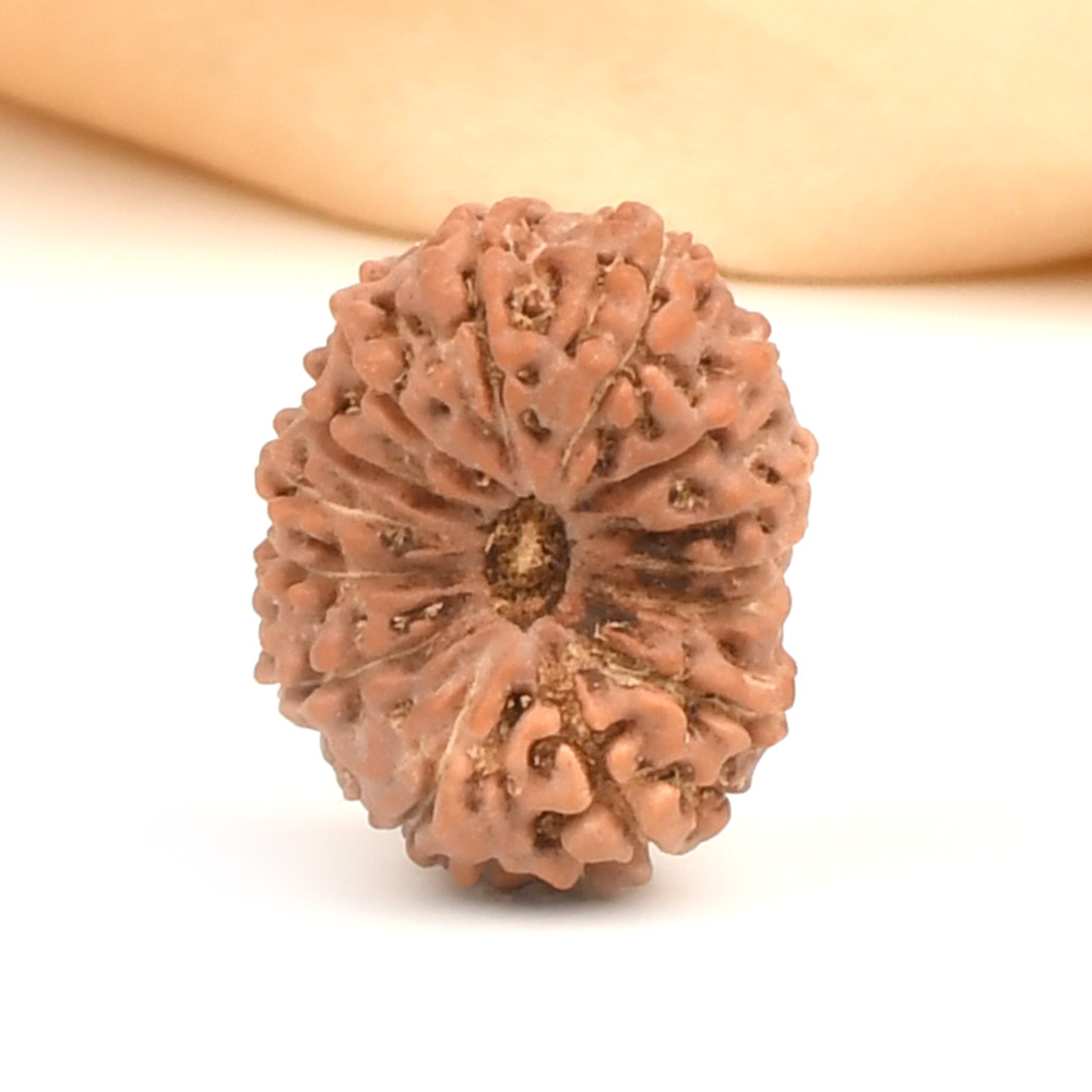 The 14 Mukhi Rudraksha is known as Deva Mani, the most precious divine gem. It embodies the mighty Hanuman and imparts the wearer with unwavering determination, divine insight, and the bravery to conquer any challenge. The wearer traverses the path of righteousness, achieving excellence, victory, and success. Hanuman, also known as Rudravtar, is a devoted disciple of Bhagwan Rama and imbues worshippers with His qualities of sincere devotion and unwavering loyalty towards dharma. Those attuned with this Rudraksha, and thus Lord Hanuman, are guided towards perfect mastery of the senses and virtues such as endurance, fearlessness, and courage. Wearing this Rudraksha helps alleviate uncontrolled anger and fear, bone pains, and blood-related disorders.