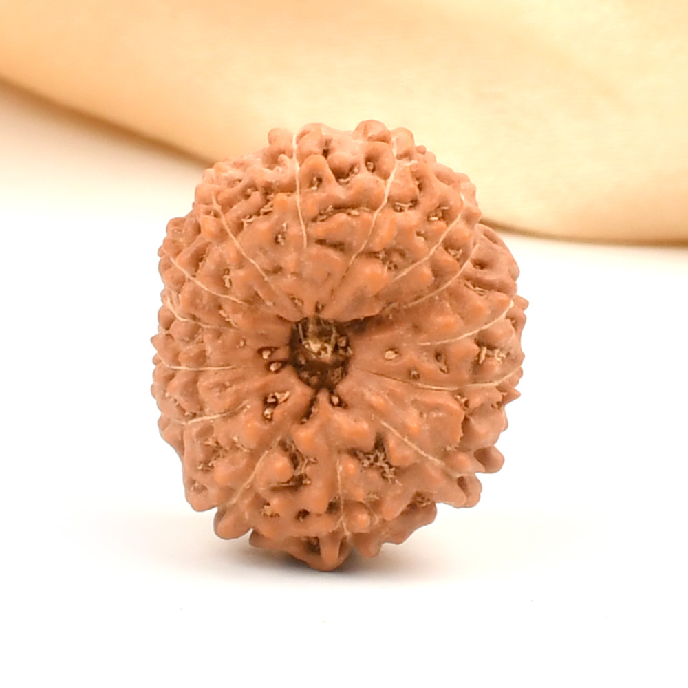 The 14 Mukhi Rudraksha is known as Deva Mani, the most precious divine gem. It embodies the mighty Hanuman and imparts the wearer with unwavering determination, divine insight, and the bravery to conquer any challenge. The wearer traverses the path of righteousness, achieving excellence, victory, and success. Hanuman, also known as Rudravtar, is a devoted disciple of Bhagwan Rama and imbues worshippers with His qualities of sincere devotion and unwavering loyalty towards dharma. Those attuned with this Rudraksha, and thus Lord Hanuman, are guided towards perfect mastery of the senses and virtues such as endurance, fearlessness, and courage. Wearing this Rudraksha helps alleviate uncontrolled anger and fear, bone pains, and blood-related disorders.