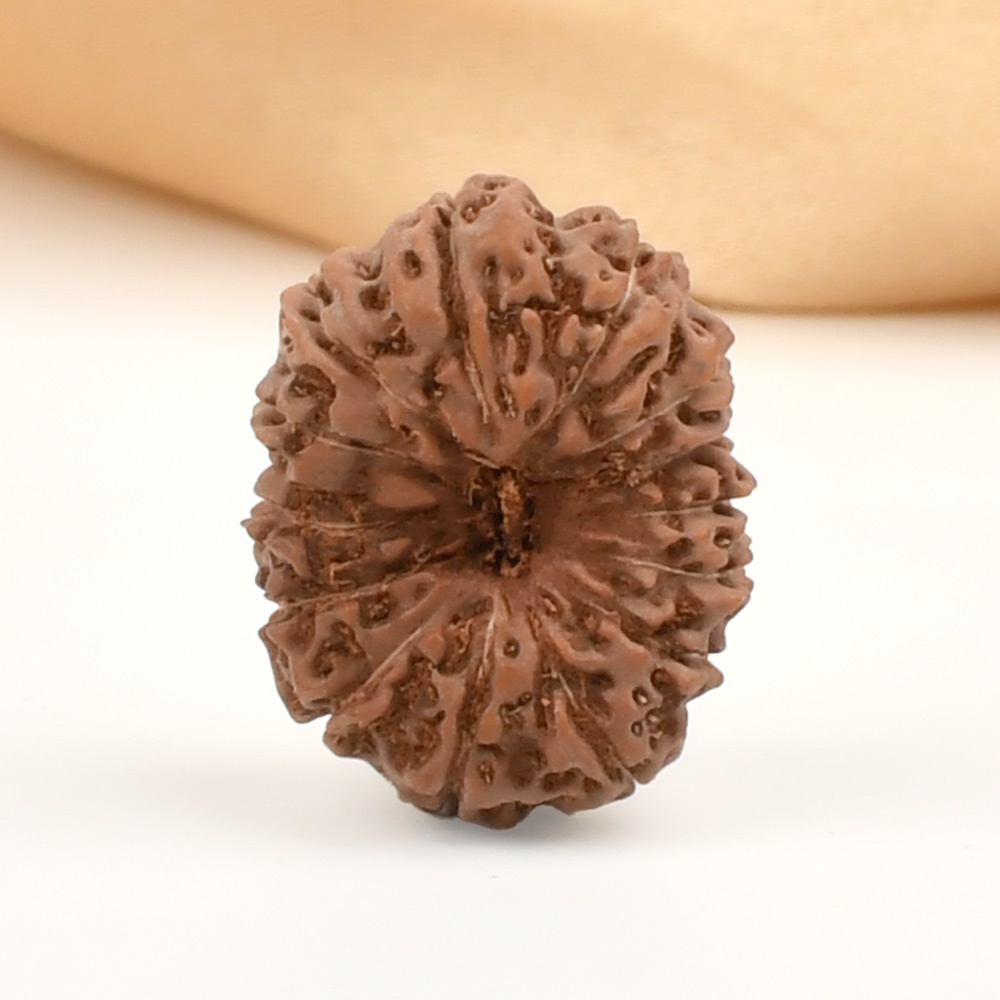 The 14 Mukhi Rudraksha is known as Deva Mani, the most precious divine gem. It embodies the mighty Hanuman and imparts the wearer with unwavering determination, divine insight, and the bravery to conquer any challenge. The wearer traverses the path of righteousness, achieving excellence, victory, and success. Hanuman, also known as Rudravtar, is a devoted disciple of Bhagwan Rama and imbues worshippers with His qualities of sincere devotion and unwavering loyalty towards dharma. Those attuned with this Rudraksha, and thus Lord Hanuman, are guided towards perfect mastery of the senses and virtues such as endurance, fearlessness, and courage. Wearing this Rudraksha helps alleviate uncontrolled anger and fear, bone pains, and blood-related disorders.