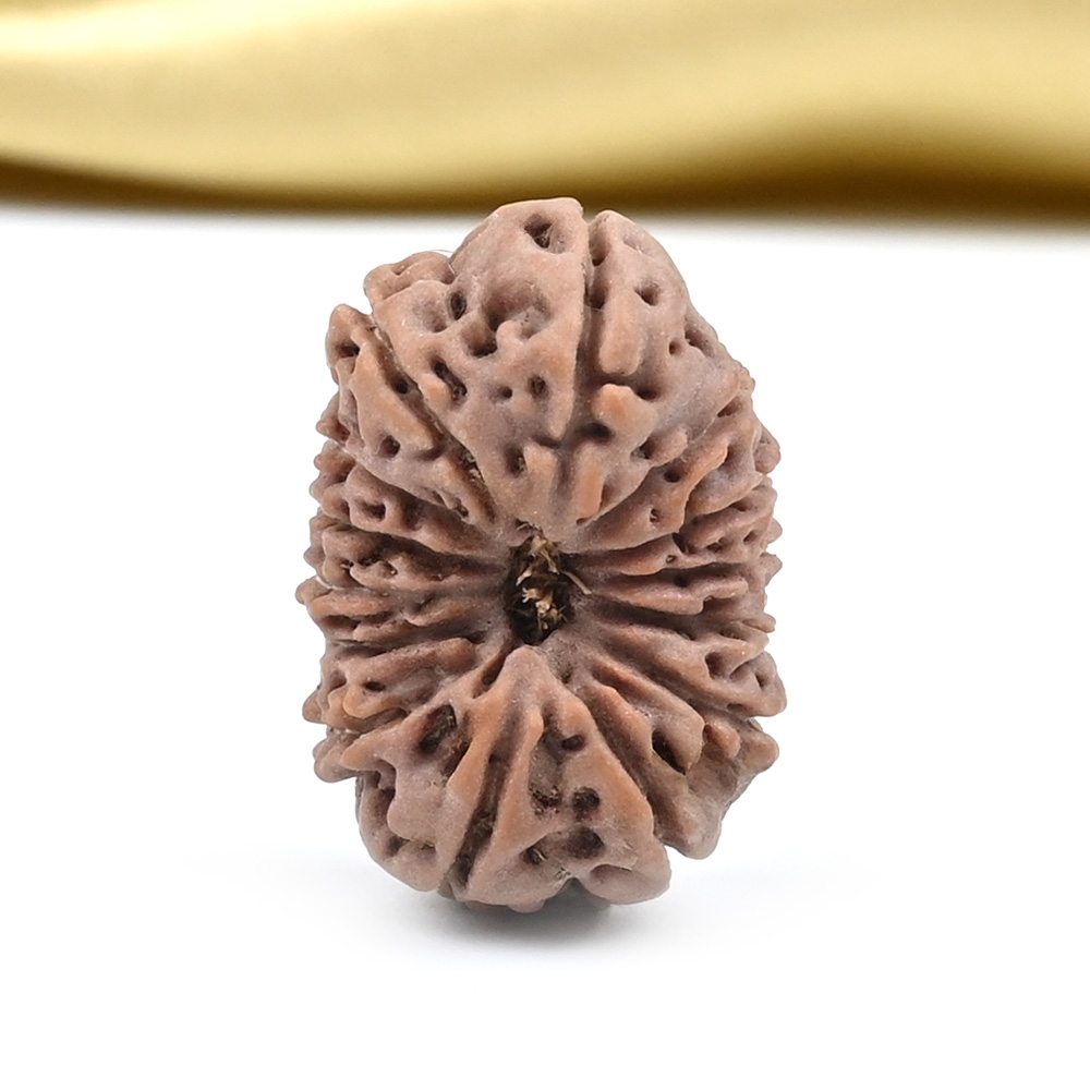 The 14 Mukhi Rudraksha is known as Deva Mani, the most precious divine gem. It embodies the mighty Hanuman and imparts the wearer with unwavering determination, divine insight, and the bravery to conquer any challenge. The wearer traverses the path of righteousness, achieving excellence, victory, and success. Hanuman, also known as Rudravtar, is a devoted disciple of Bhagwan Rama and imbues worshippers with His qualities of sincere devotion and unwavering loyalty towards dharma. Those attuned with this Rudraksha, and thus Lord Hanuman, are guided towards perfect mastery of the senses and virtues such as endurance, fearlessness, and courage. Wearing this Rudraksha helps alleviate uncontrolled anger and fear, bone pains, and blood-related disorders.