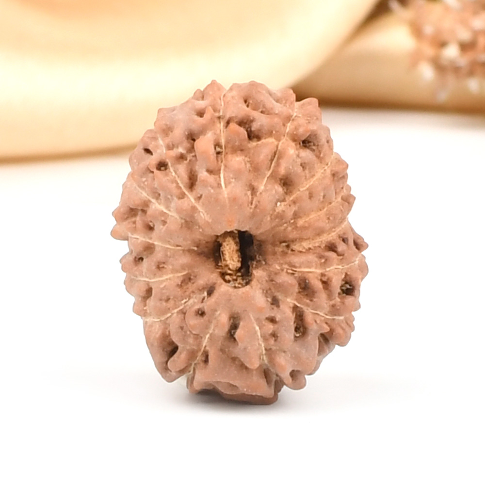 The 14 Mukhi Rudraksha is known as Deva Mani, the most precious divine gem. It embodies the mighty Hanuman and imparts the wearer with unwavering determination, divine insight, and the bravery to conquer any challenge. The wearer traverses the path of righteousness, achieving excellence, victory, and success. Hanuman, also known as Rudravtar, is a devoted disciple of Bhagwan Rama and imbues worshippers with His qualities of sincere devotion and unwavering loyalty towards dharma. Those attuned with this Rudraksha, and thus Lord Hanuman, are guided towards perfect mastery of the senses and virtues such as endurance, fearlessness, and courage. Wearing this Rudraksha helps alleviate uncontrolled anger and fear, bone pains, and blood-related disorders.