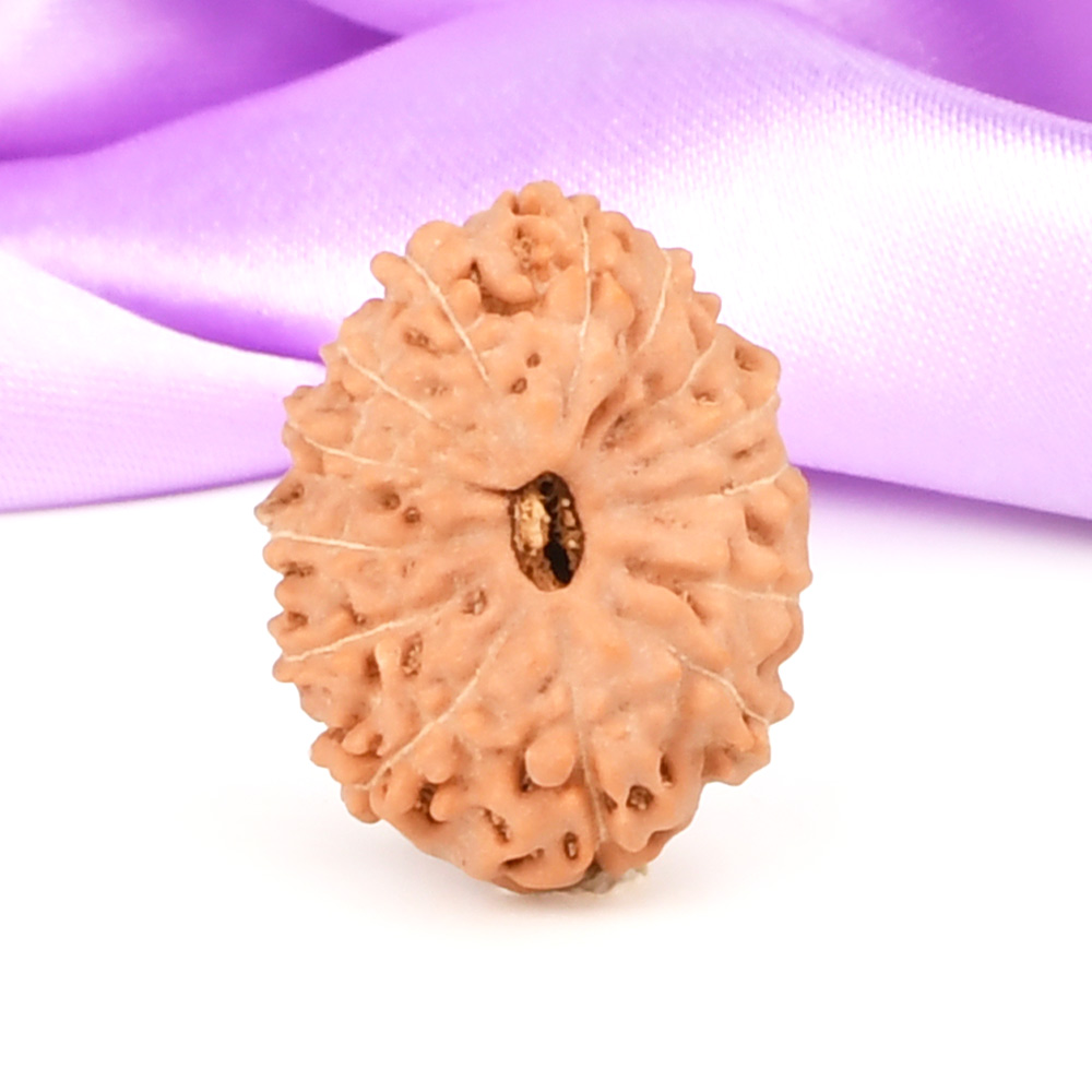 The 14 Mukhi Rudraksha is known as Deva Mani, the most precious divine gem. It embodies the mighty Hanuman and imparts the wearer with unwavering determination, divine insight, and the bravery to conquer any challenge. The wearer traverses the path of righteousness, achieving excellence, victory, and success. Hanuman, also known as Rudravtar, is a devoted disciple of Bhagwan Rama and imbues worshippers with His qualities of sincere devotion and unwavering loyalty towards dharma. Those attuned with this Rudraksha, and thus Lord Hanuman, are guided towards perfect mastery of the senses and virtues such as endurance, fearlessness, and courage. Wearing this Rudraksha helps alleviate uncontrolled anger and fear, bone pains, and blood-related disorders.
