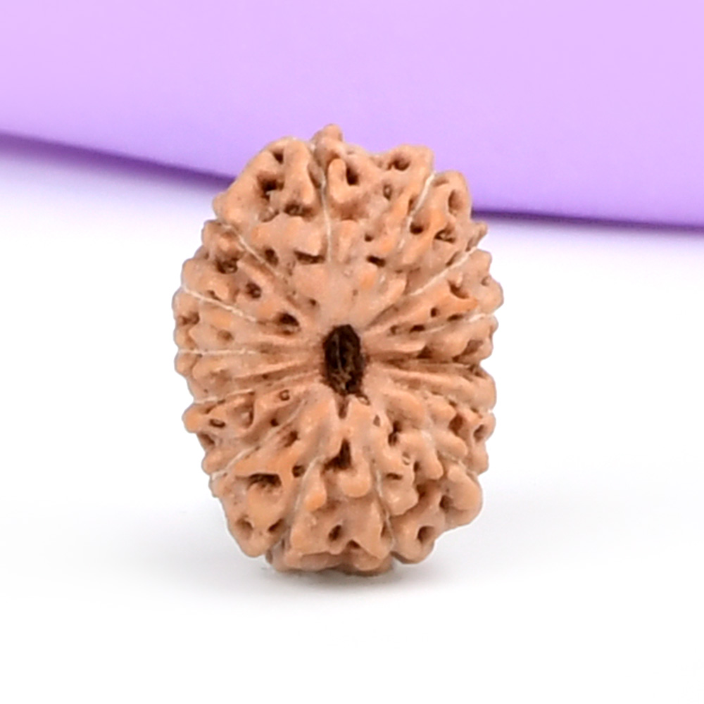 The 14 Mukhi Rudraksha is known as Deva Mani, the most precious divine gem. It embodies the mighty Hanuman and imparts the wearer with unwavering determination, divine insight, and the bravery to conquer any challenge. The wearer traverses the path of righteousness, achieving excellence, victory, and success. Hanuman, also known as Rudravtar, is a devoted disciple of Bhagwan Rama and imbues worshippers with His qualities of sincere devotion and unwavering loyalty towards dharma. Those attuned with this Rudraksha, and thus Lord Hanuman, are guided towards perfect mastery of the senses and virtues such as endurance, fearlessness, and courage. Wearing this Rudraksha helps alleviate uncontrolled anger and fear, bone pains, and blood-related disorders.