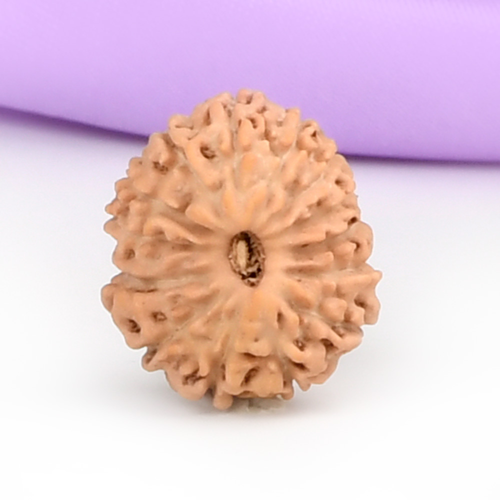 The 14 Mukhi Rudraksha is known as Deva Mani, the most precious divine gem. It embodies the mighty Hanuman and imparts the wearer with unwavering determination, divine insight, and the bravery to conquer any challenge. The wearer traverses the path of righteousness, achieving excellence, victory, and success. Hanuman, also known as Rudravtar, is a devoted disciple of Bhagwan Rama and imbues worshippers with His qualities of sincere devotion and unwavering loyalty towards dharma. Those attuned with this Rudraksha, and thus Lord Hanuman, are guided towards perfect mastery of the senses and virtues such as endurance, fearlessness, and courage. Wearing this Rudraksha helps alleviate uncontrolled anger and fear, bone pains, and blood-related disorders.