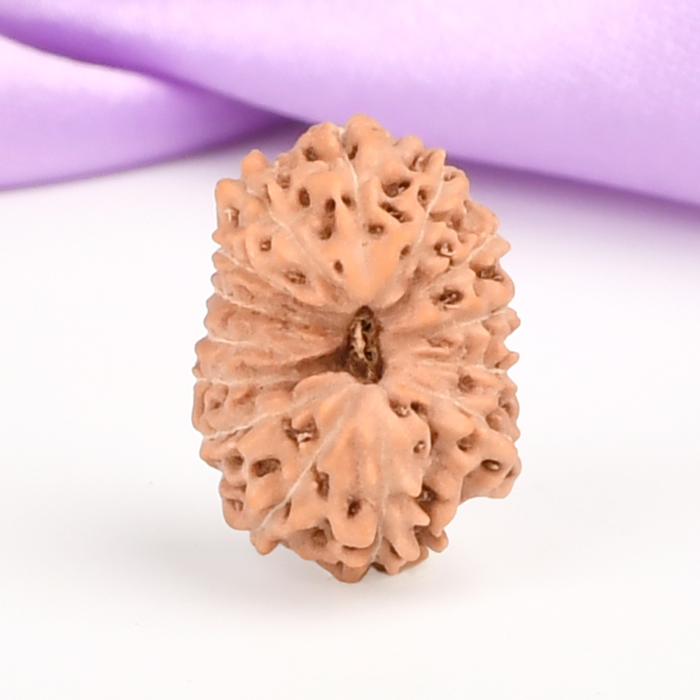 The 14 Mukhi Rudraksha is known as Deva Mani, the most precious divine gem. It embodies the mighty Hanuman and imparts the wearer with unwavering determination, divine insight, and the bravery to conquer any challenge. The wearer traverses the path of righteousness, achieving excellence, victory, and success. Hanuman, also known as Rudravtar, is a devoted disciple of Bhagwan Rama and imbues worshippers with His qualities of sincere devotion and unwavering loyalty towards dharma. Those attuned with this Rudraksha, and thus Lord Hanuman, are guided towards perfect mastery of the senses and virtues such as endurance, fearlessness, and courage. Wearing this Rudraksha helps alleviate uncontrolled anger and fear, bone pains, and blood-related disorders.