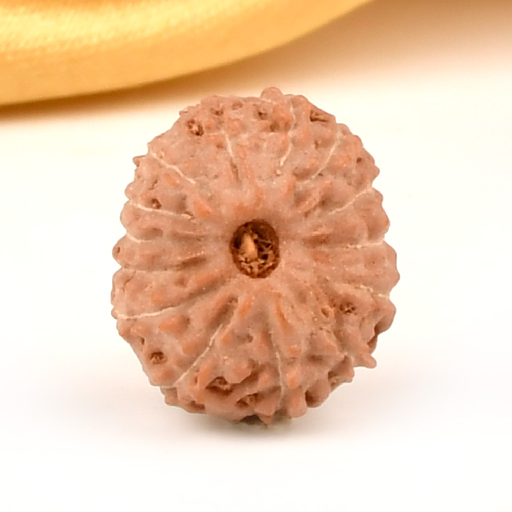 The 14 Mukhi Rudraksha is known as Deva Mani, the most precious divine gem. It embodies the mighty Hanuman and imparts the wearer with unwavering determination, divine insight, and the bravery to conquer any challenge. The wearer traverses the path of righteousness, achieving excellence, victory, and success. Hanuman, also known as Rudravtar, is a devoted disciple of Bhagwan Rama and imbues worshippers with His qualities of sincere devotion and unwavering loyalty towards dharma. Those attuned with this Rudraksha, and thus Lord Hanuman, are guided towards perfect mastery of the senses and virtues such as endurance, fearlessness, and courage. Wearing this Rudraksha helps alleviate uncontrolled anger and fear, bone pains, and blood-related disorders.