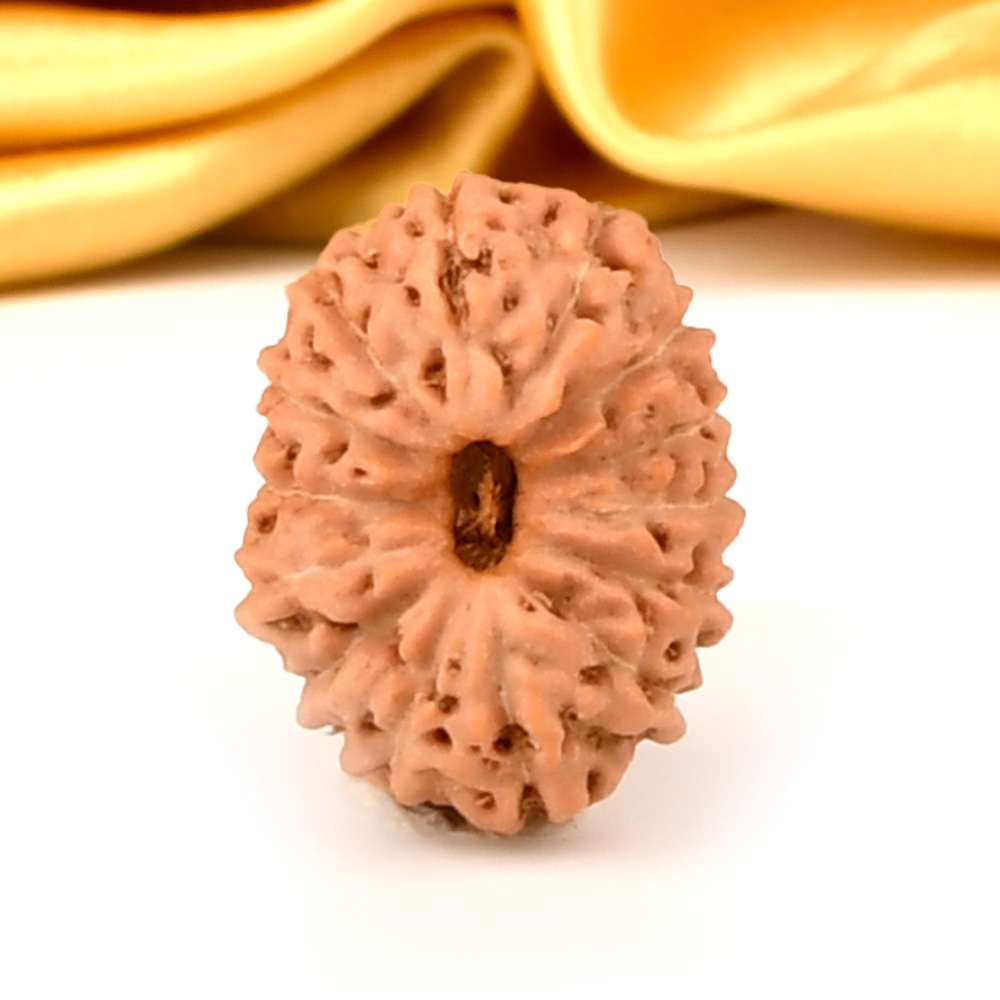The 14 Mukhi Rudraksha is known as Deva Mani, the most precious divine gem. It embodies the mighty Hanuman and imparts the wearer with unwavering determination, divine insight, and the bravery to conquer any challenge. The wearer traverses the path of righteousness, achieving excellence, victory, and success. Hanuman, also known as Rudravtar, is a devoted disciple of Bhagwan Rama and imbues worshippers with His qualities of sincere devotion and unwavering loyalty towards dharma. Those attuned with this Rudraksha, and thus Lord Hanuman, are guided towards perfect mastery of the senses and virtues such as endurance, fearlessness, and courage. Wearing this Rudraksha helps alleviate uncontrolled anger and fear, bone pains, and blood-related disorders.