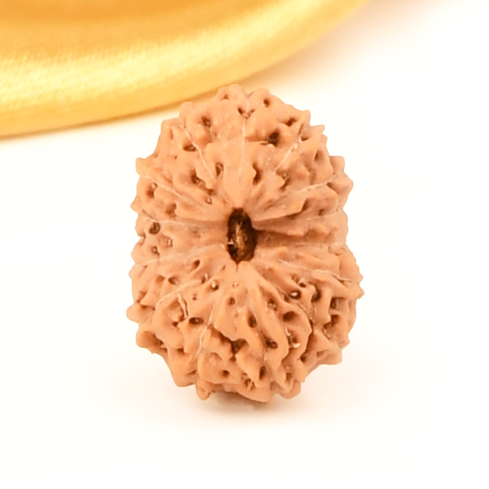 The 14 Mukhi Rudraksha is known as Deva Mani, the most precious divine gem. It embodies the mighty Hanuman and imparts the wearer with unwavering determination, divine insight, and the bravery to conquer any challenge. The wearer traverses the path of righteousness, achieving excellence, victory, and success. Hanuman, also known as Rudravtar, is a devoted disciple of Bhagwan Rama and imbues worshippers with His qualities of sincere devotion and unwavering loyalty towards dharma. Those attuned with this Rudraksha, and thus Lord Hanuman, are guided towards perfect mastery of the senses and virtues such as endurance, fearlessness, and courage. Wearing this Rudraksha helps alleviate uncontrolled anger and fear, bone pains, and blood-related disorders.