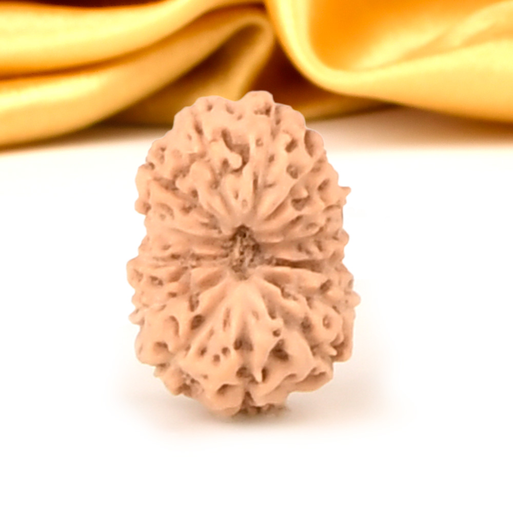 The 14 Mukhi Rudraksha is known as Deva Mani, the most precious divine gem. It embodies the mighty Hanuman and imparts the wearer with unwavering determination, divine insight, and the bravery to conquer any challenge. The wearer traverses the path of righteousness, achieving excellence, victory, and success. Hanuman, also known as Rudravtar, is a devoted disciple of Bhagwan Rama and imbues worshippers with His qualities of sincere devotion and unwavering loyalty towards dharma. Those attuned with this Rudraksha, and thus Lord Hanuman, are guided towards perfect mastery of the senses and virtues such as endurance, fearlessness, and courage. Wearing this Rudraksha helps alleviate uncontrolled anger and fear, bone pains, and blood-related disorders.