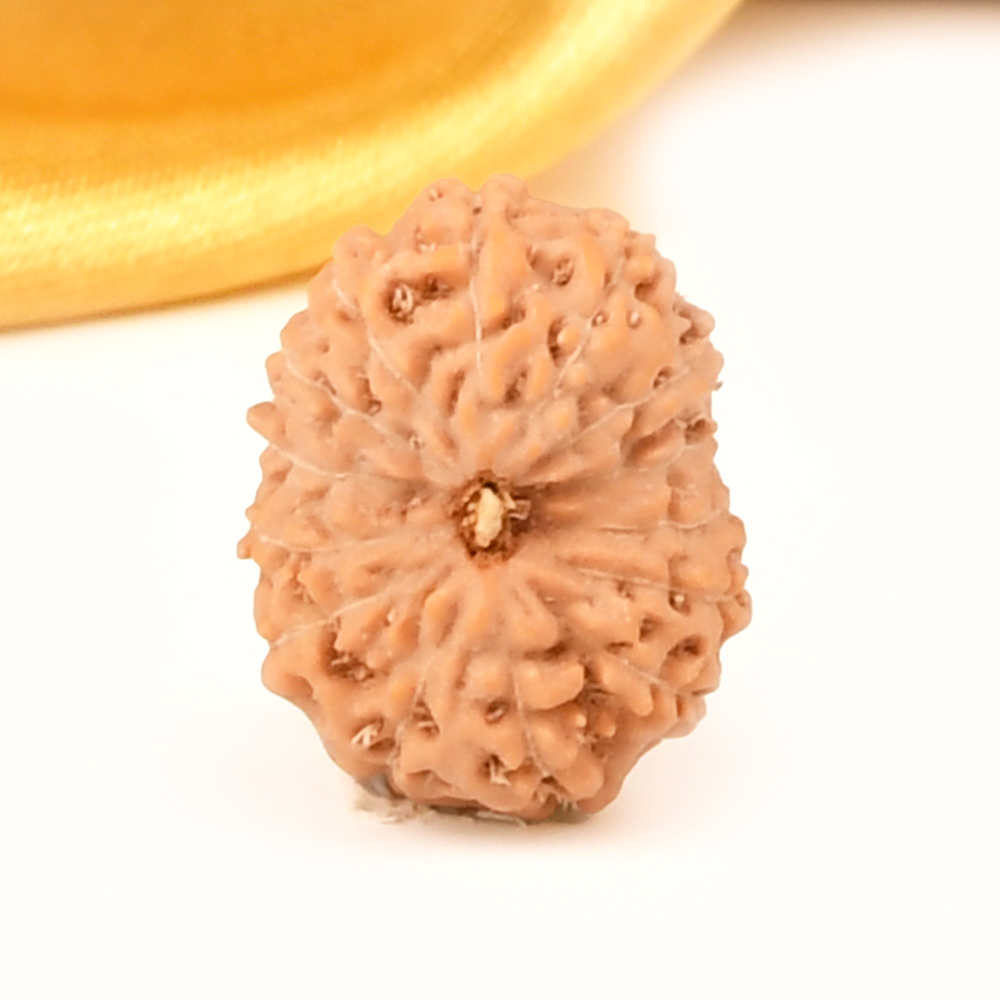 The 14 Mukhi Rudraksha is known as Deva Mani, the most precious divine gem. It embodies the mighty Hanuman and imparts the wearer with unwavering determination, divine insight, and the bravery to conquer any challenge. The wearer traverses the path of righteousness, achieving excellence, victory, and success. Hanuman, also known as Rudravtar, is a devoted disciple of Bhagwan Rama and imbues worshippers with His qualities of sincere devotion and unwavering loyalty towards dharma. Those attuned with this Rudraksha, and thus Lord Hanuman, are guided towards perfect mastery of the senses and virtues such as endurance, fearlessness, and courage. Wearing this Rudraksha helps alleviate uncontrolled anger and fear, bone pains, and blood-related disorders.