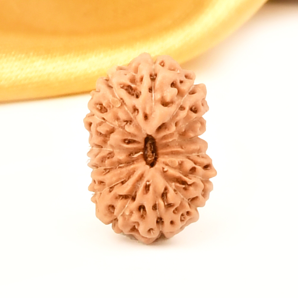 The 14 Mukhi Rudraksha is known as Deva Mani, the most precious divine gem. It embodies the mighty Hanuman and imparts the wearer with unwavering determination, divine insight, and the bravery to conquer any challenge. The wearer traverses the path of righteousness, achieving excellence, victory, and success. Hanuman, also known as Rudravtar, is a devoted disciple of Bhagwan Rama and imbues worshippers with His qualities of sincere devotion and unwavering loyalty towards dharma. Those attuned with this Rudraksha, and thus Lord Hanuman, are guided towards perfect mastery of the senses and virtues such as endurance, fearlessness, and courage. Wearing this Rudraksha helps alleviate uncontrolled anger and fear, bone pains, and blood-related disorders.