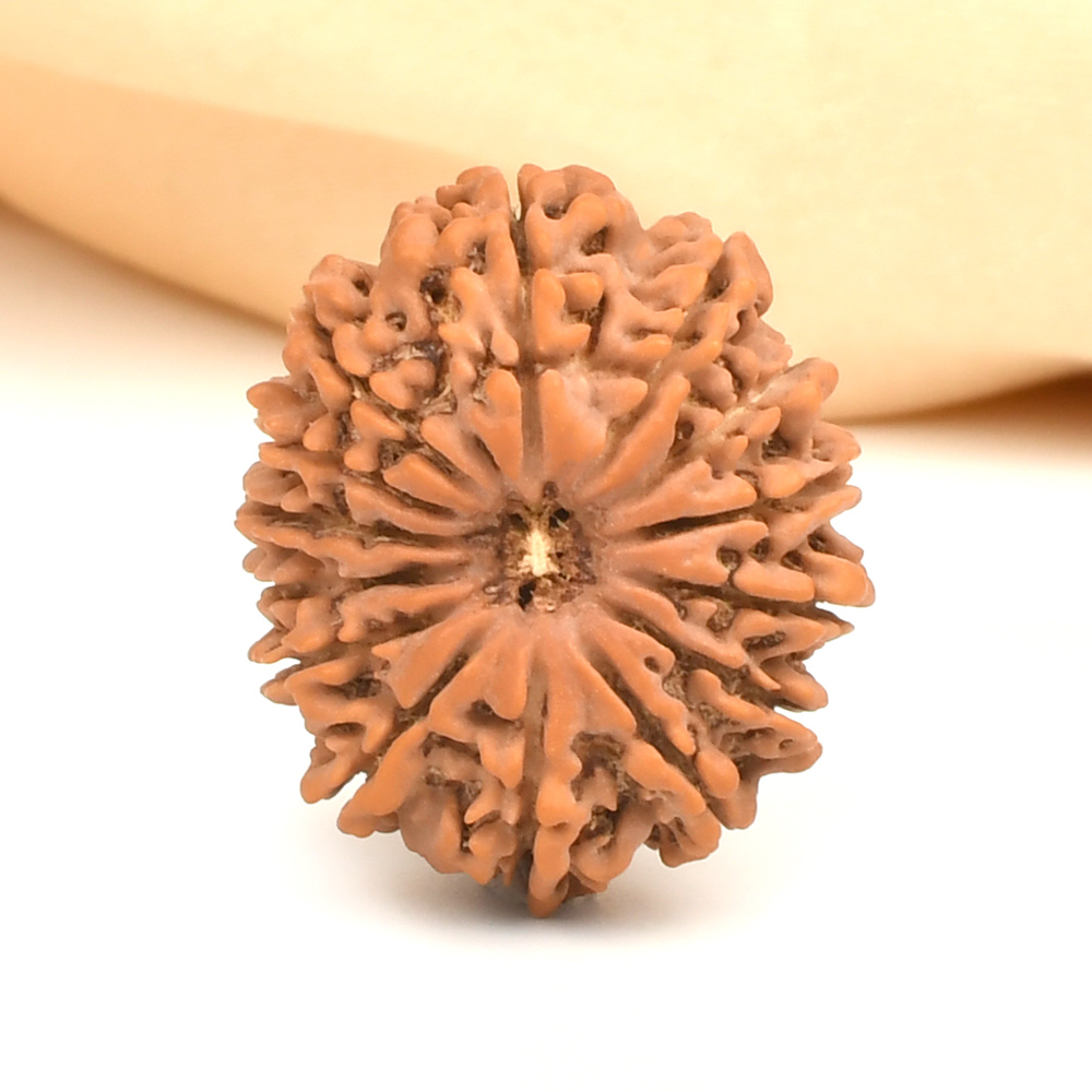 The 14 Mukhi Rudraksha is known as Deva Mani, the most precious divine gem. It embodies the mighty Hanuman and imparts the wearer with unwavering determination, divine insight, and the bravery to conquer any challenge. The wearer traverses the path of righteousness, achieving excellence, victory, and success. Hanuman, also known as Rudravtar, is a devoted disciple of Bhagwan Rama and imbues worshippers with His qualities of sincere devotion and unwavering loyalty towards dharma. Those attuned with this Rudraksha, and thus Lord Hanuman, are guided towards perfect mastery of the senses and virtues such as endurance, fearlessness, and courage. Wearing this Rudraksha helps alleviate uncontrolled anger and fear, bone pains, and blood-related disorders.