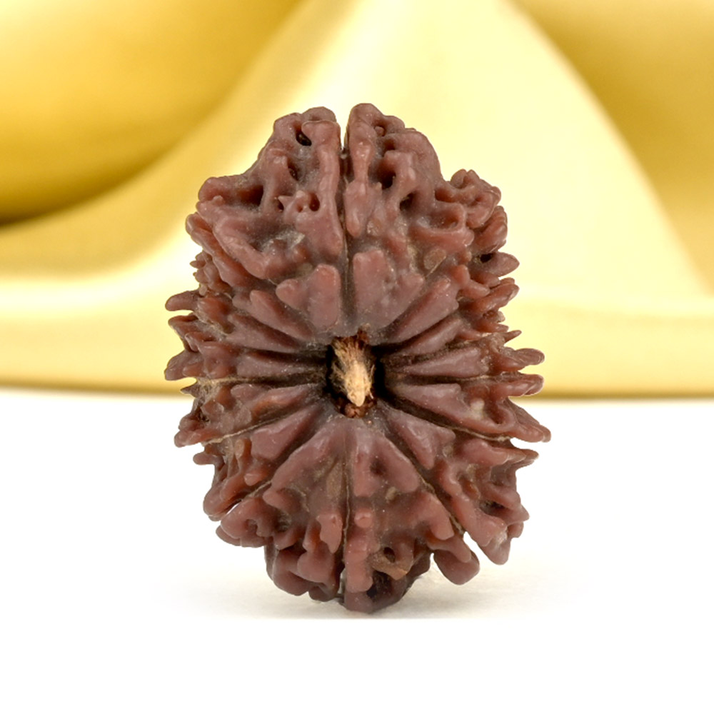 The 14 Mukhi Rudraksha is known as Deva Mani, the most precious divine gem. It embodies the mighty Hanuman and imparts the wearer with unwavering determination, divine insight, and the bravery to conquer any challenge. The wearer traverses the path of righteousness, achieving excellence, victory, and success. Hanuman, also known as Rudravtar, is a devoted disciple of Bhagwan Rama and imbues worshippers with His qualities of sincere devotion and unwavering loyalty towards dharma. Those attuned with this Rudraksha, and thus Lord Hanuman, are guided towards perfect mastery of the senses and virtues such as endurance, fearlessness, and courage. Wearing this Rudraksha helps alleviate uncontrolled anger and fear, bone pains, and blood-related disorders.