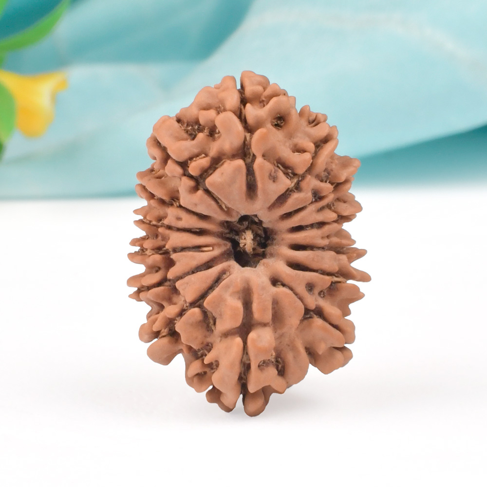 The 14 Mukhi Rudraksha is known as Deva Mani, the most precious divine gem. It embodies the mighty Hanuman and imparts the wearer with unwavering determination, divine insight, and the bravery to conquer any challenge. The wearer traverses the path of righteousness, achieving excellence, victory, and success. Hanuman, also known as Rudravtar, is a devoted disciple of Bhagwan Rama and imbues worshippers with His qualities of sincere devotion and unwavering loyalty towards dharma. Those attuned with this Rudraksha, and thus Lord Hanuman, are guided towards perfect mastery of the senses and virtues such as endurance, fearlessness, and courage. Wearing this Rudraksha helps alleviate uncontrolled anger and fear, bone pains, and blood-related disorders.