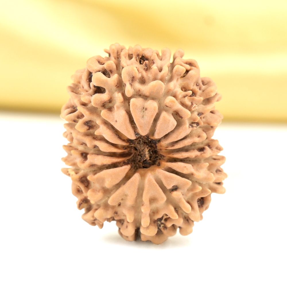 The 14 Mukhi Rudraksha is known as Deva Mani, the most precious divine gem. It embodies the mighty Hanuman and imparts the wearer with unwavering determination, divine insight, and the bravery to conquer any challenge. The wearer traverses the path of righteousness, achieving excellence, victory, and success. Hanuman, also known as Rudravtar, is a devoted disciple of Bhagwan Rama and imbues worshippers with His qualities of sincere devotion and unwavering loyalty towards dharma. Those attuned with this Rudraksha, and thus Lord Hanuman, are guided towards perfect mastery of the senses and virtues such as endurance, fearlessness, and courage. Wearing this Rudraksha helps alleviate uncontrolled anger and fear, bone pains, and blood-related disorders.