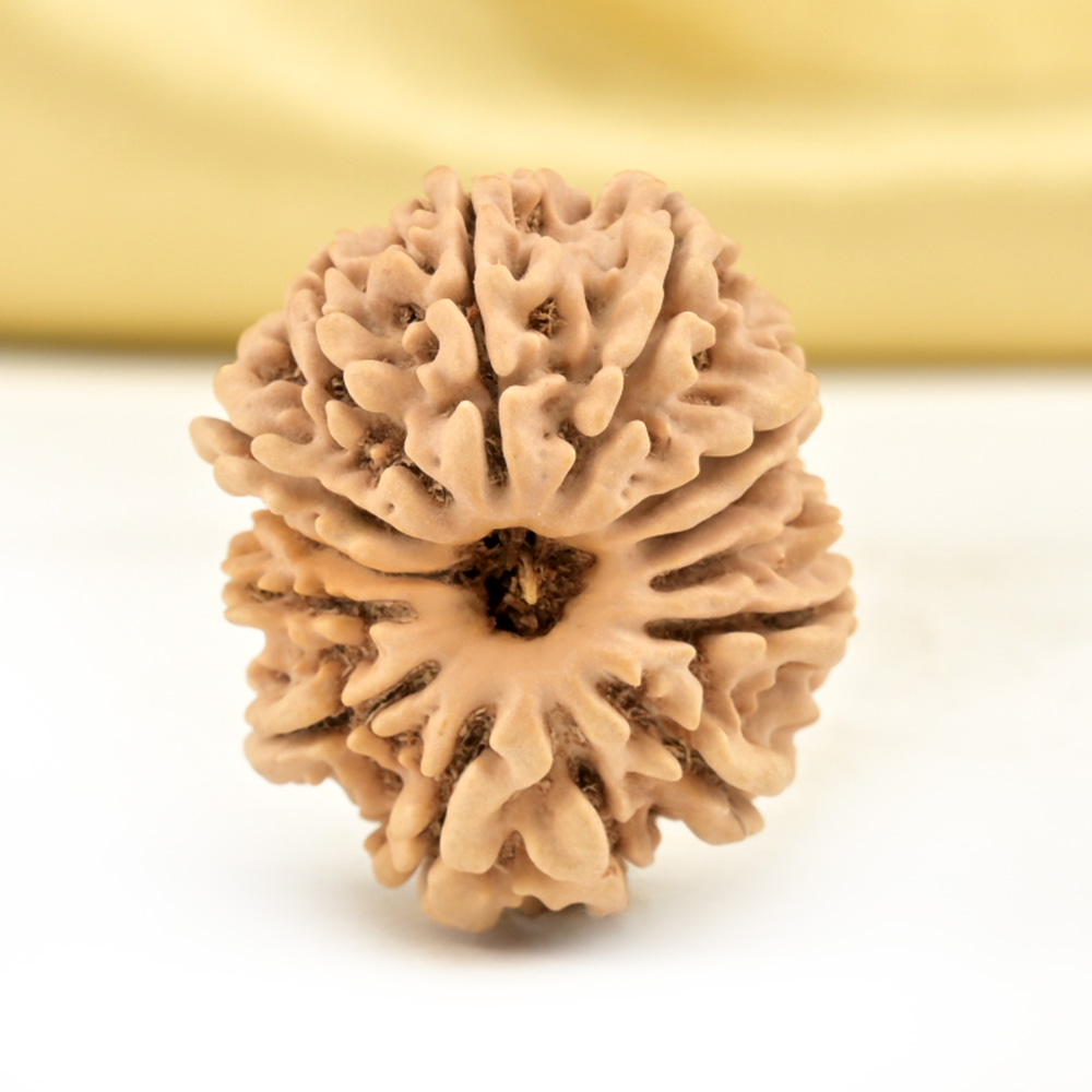 The 14 Mukhi Rudraksha is known as Deva Mani, the most precious divine gem. It embodies the mighty Hanuman and imparts the wearer with unwavering determination, divine insight, and the bravery to conquer any challenge. The wearer traverses the path of righteousness, achieving excellence, victory, and success. Hanuman, also known as Rudravtar, is a devoted disciple of Bhagwan Rama and imbues worshippers with His qualities of sincere devotion and unwavering loyalty towards dharma. Those attuned with this Rudraksha, and thus Lord Hanuman, are guided towards perfect mastery of the senses and virtues such as endurance, fearlessness, and courage. Wearing this Rudraksha helps alleviate uncontrolled anger and fear, bone pains, and blood-related disorders.