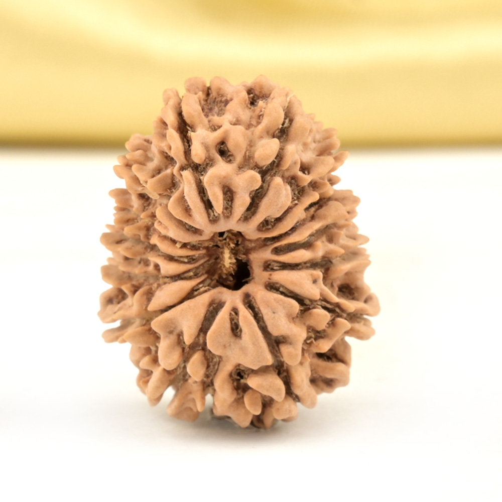 The 14 Mukhi Rudraksha is known as Deva Mani, the most precious divine gem. It embodies the mighty Hanuman and imparts the wearer with unwavering determination, divine insight, and the bravery to conquer any challenge. The wearer traverses the path of righteousness, achieving excellence, victory, and success. Hanuman, also known as Rudravtar, is a devoted disciple of Bhagwan Rama and imbues worshippers with His qualities of sincere devotion and unwavering loyalty towards dharma. Those attuned with this Rudraksha, and thus Lord Hanuman, are guided towards perfect mastery of the senses and virtues such as endurance, fearlessness, and courage. Wearing this Rudraksha helps alleviate uncontrolled anger and fear, bone pains, and blood-related disorders.
