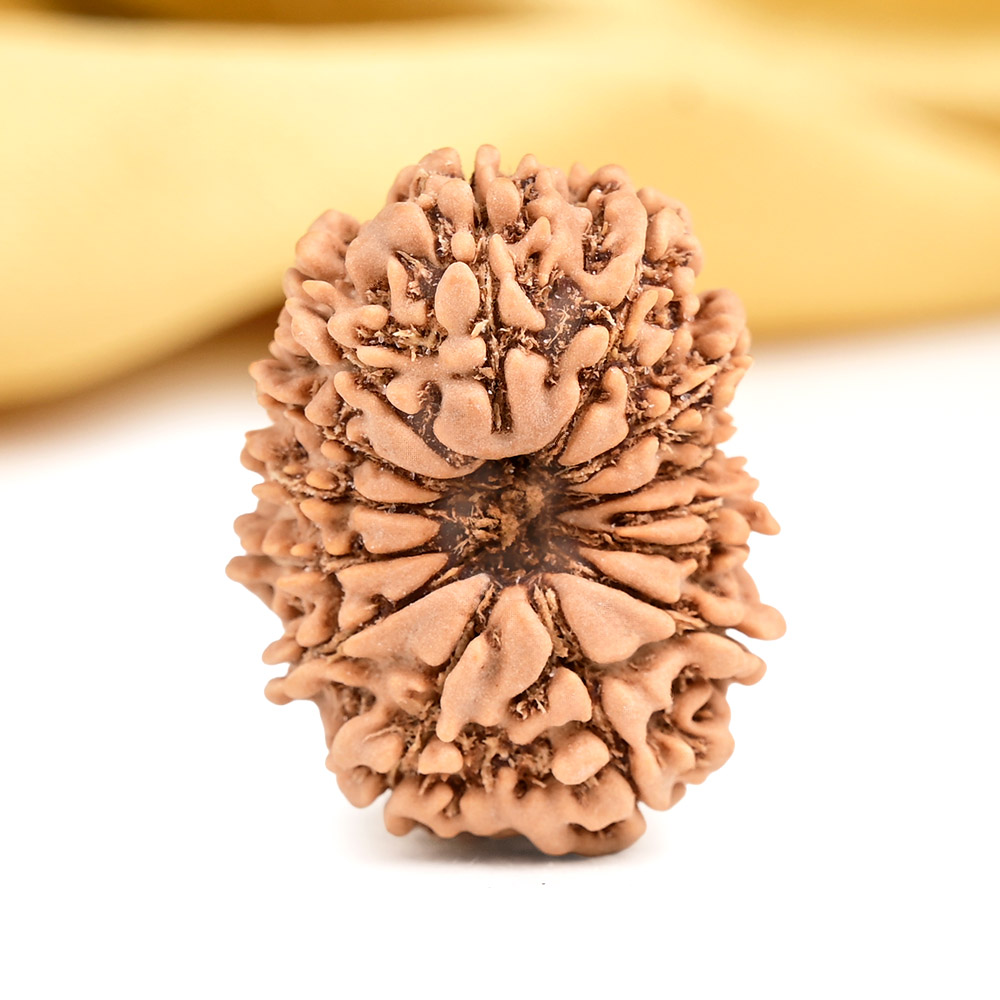 The 14 Mukhi Rudraksha is known as Deva Mani, the most precious divine gem. It embodies the mighty Hanuman and imparts the wearer with unwavering determination, divine insight, and the bravery to conquer any challenge. The wearer traverses the path of righteousness, achieving excellence, victory, and success. Hanuman, also known as Rudravtar, is a devoted disciple of Bhagwan Rama and imbues worshippers with His qualities of sincere devotion and unwavering loyalty towards dharma. Those attuned with this Rudraksha, and thus Lord Hanuman, are guided towards perfect mastery of the senses and virtues such as endurance, fearlessness, and courage. Wearing this Rudraksha helps alleviate uncontrolled anger and fear, bone pains, and blood-related disorders.