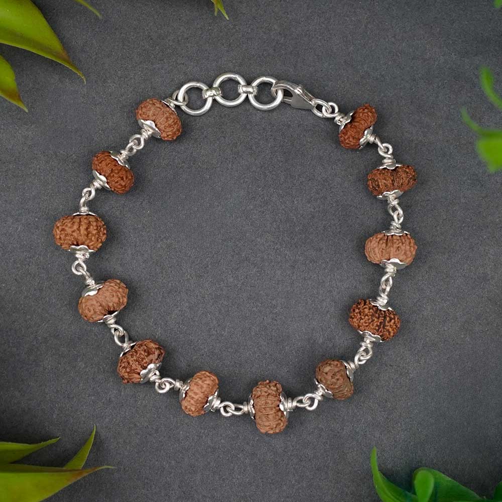 This 14 Mukhi Java 925 Silver Flower Caps Bracelet features 14 Mukhi Rudraksha beads with intricate flower-shaped silver caps on each bead, adding a touch of elegance and strength. The flower capping enhances the overall design while providing durability to the beads. The bracelet is secured with a sturdy lobster clasp, ensuring a secure fit.